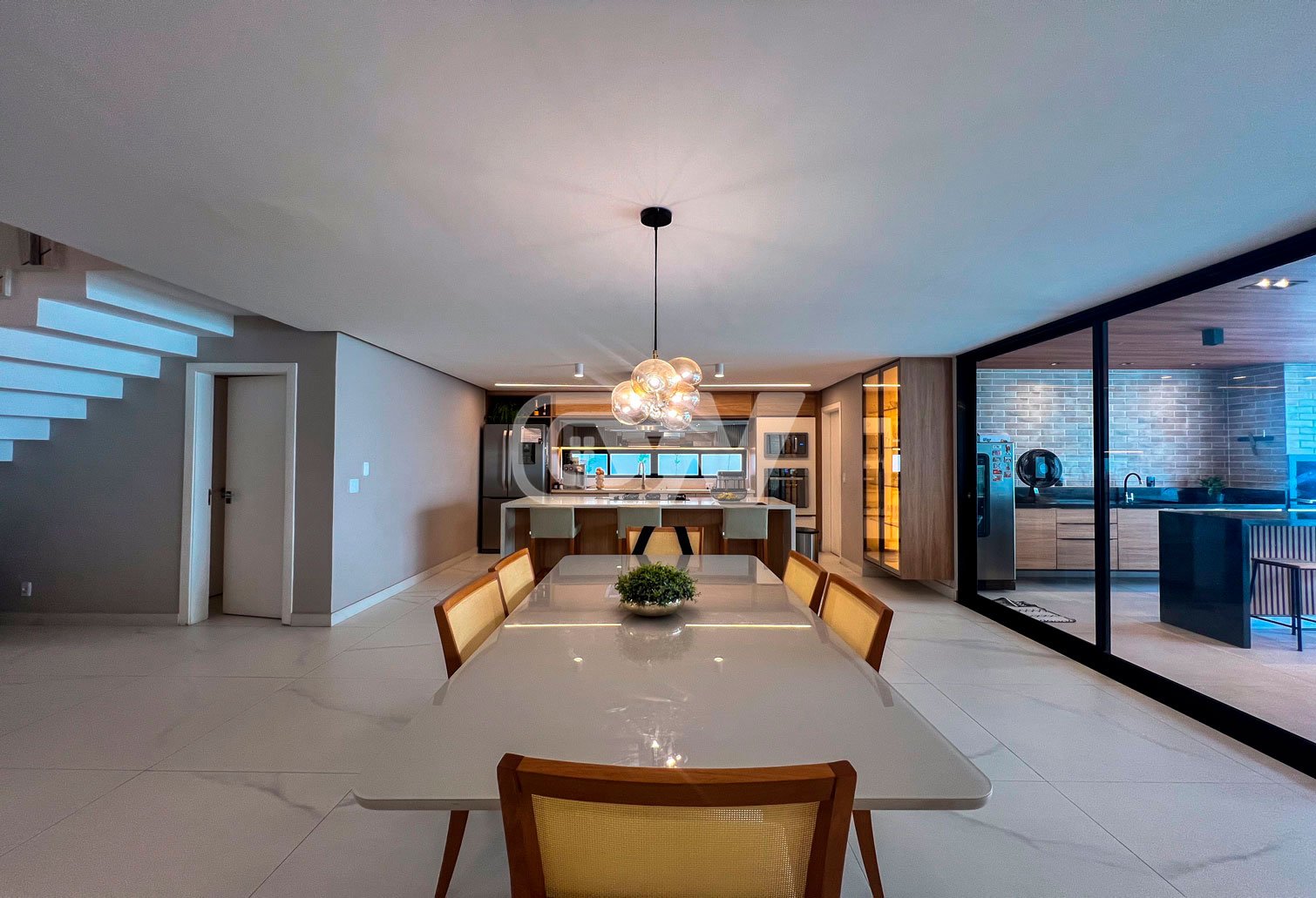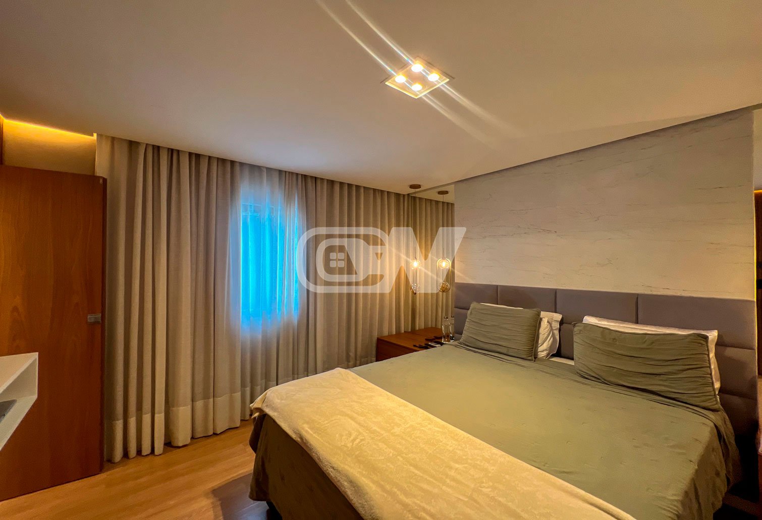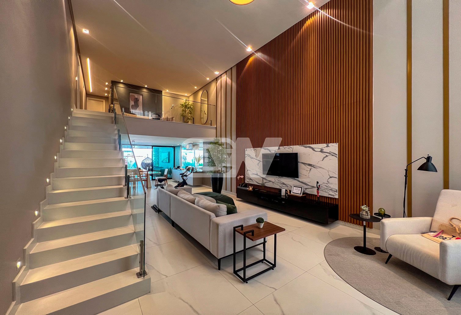 2º Pavimento: São 3 suítes sendo a máster com varanda privativa, closet, salão de banho com hidromassagem. Todas as suítes, decoradas rica em marcenaria e iluminação.