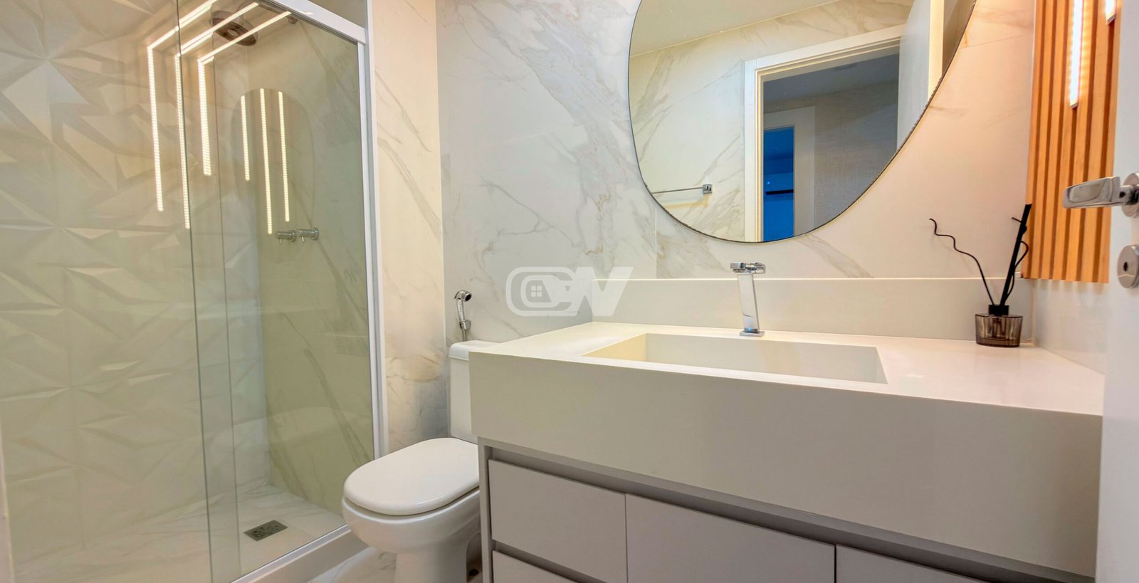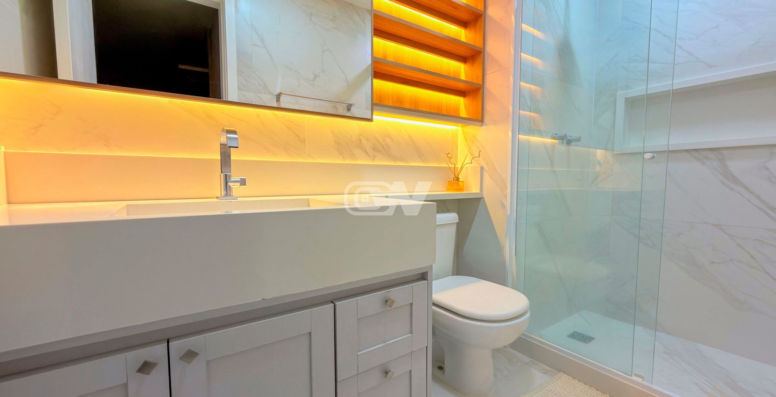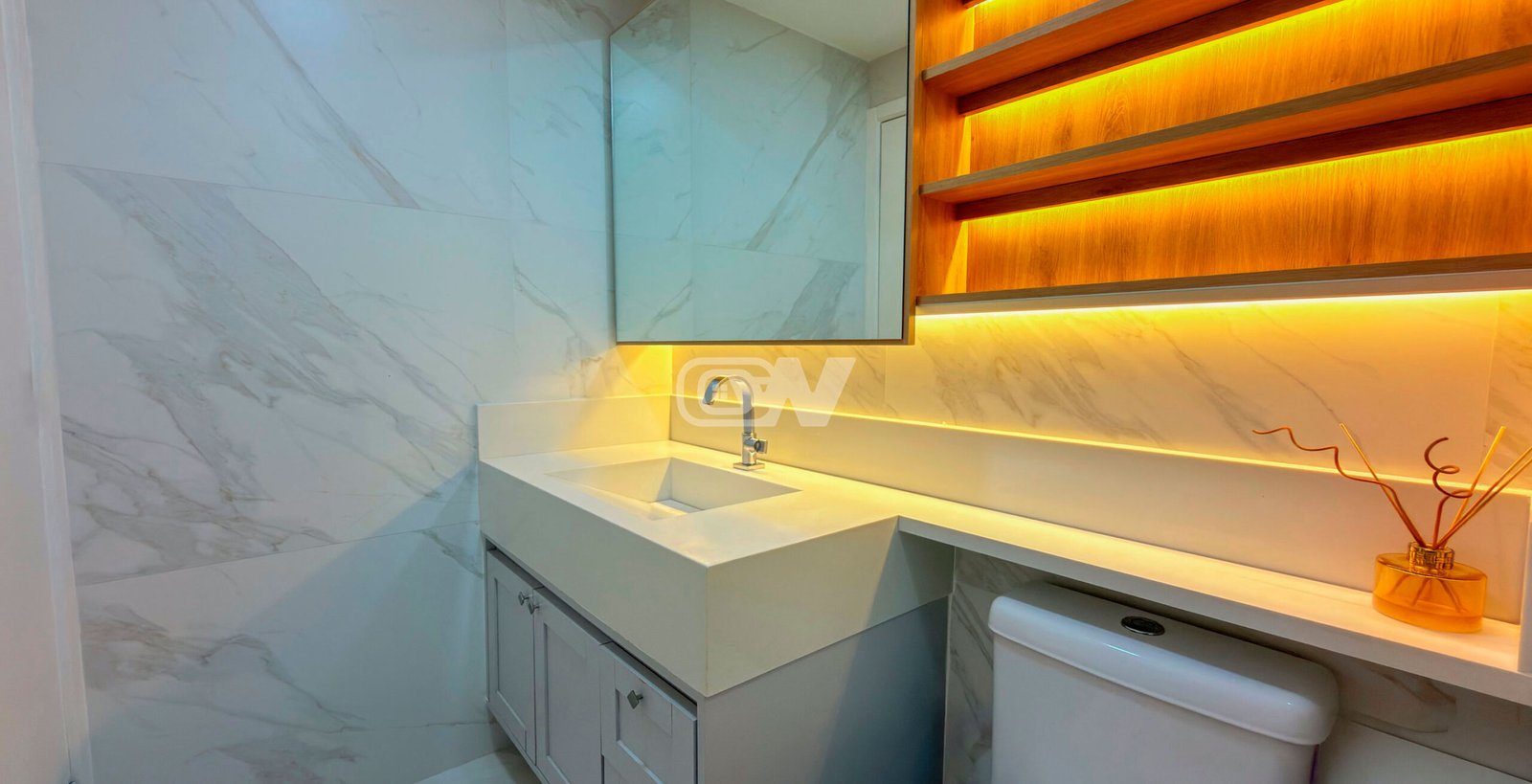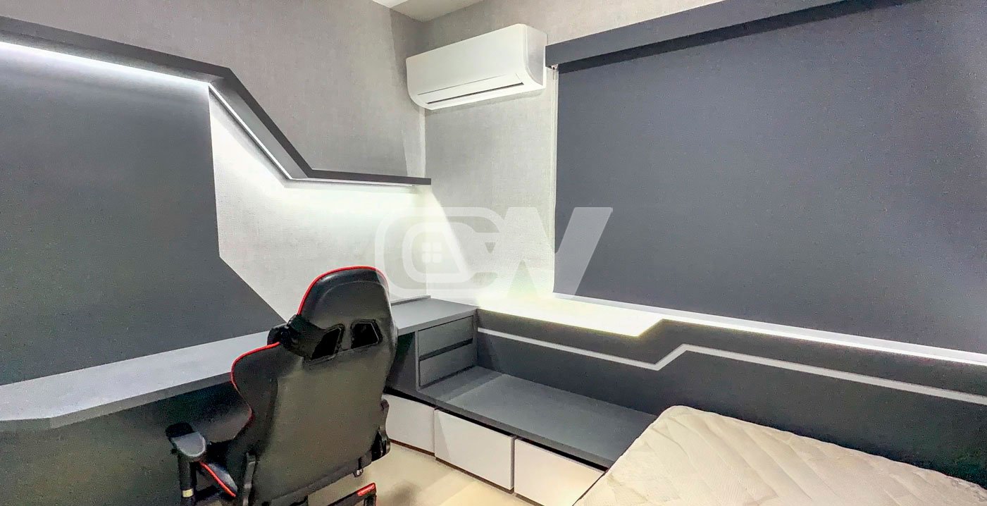 Sala em três (3) três ambientes, climatizada com ar condicionado modelo K7, projeto de iluminação direto e indireto, decorado com planejados, com acesso a varanda gourmet fechada com cortina de vidro com vista para o lazer do condomínio, banheiro com bancada esculpida, (#) três quartos com armários planejados, sendo a suíte principal com close.