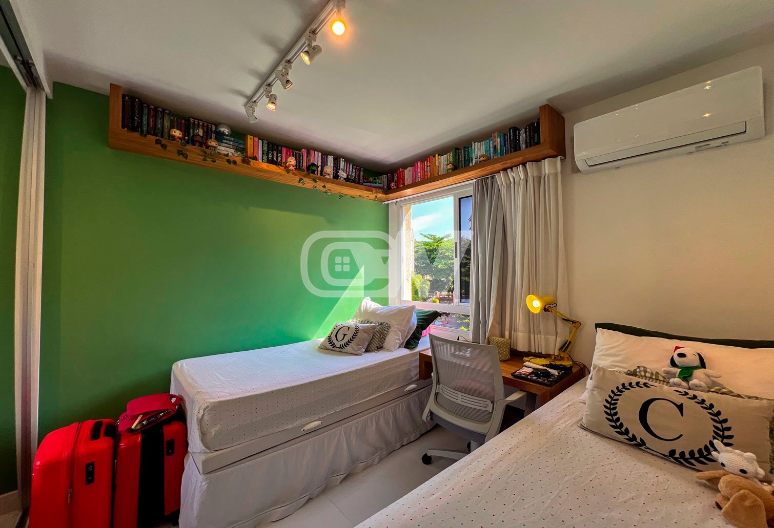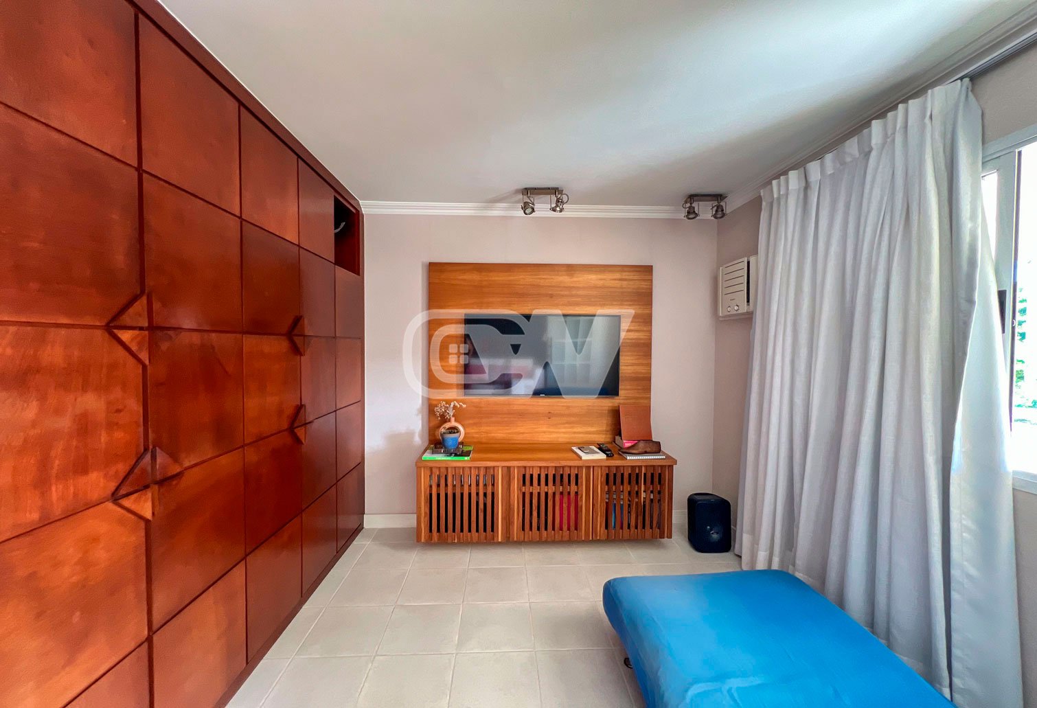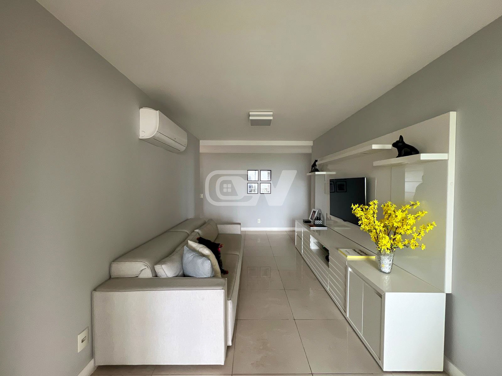 Sala íntima fazendo a integração entre 04 suítes, sendo a master com armários planejados, closet, salão de banho com hidromassagem e acesso à varanda frontal. Na sequência, outras 03 suítes complementam o imóvel, sendo duas viradas para mar.