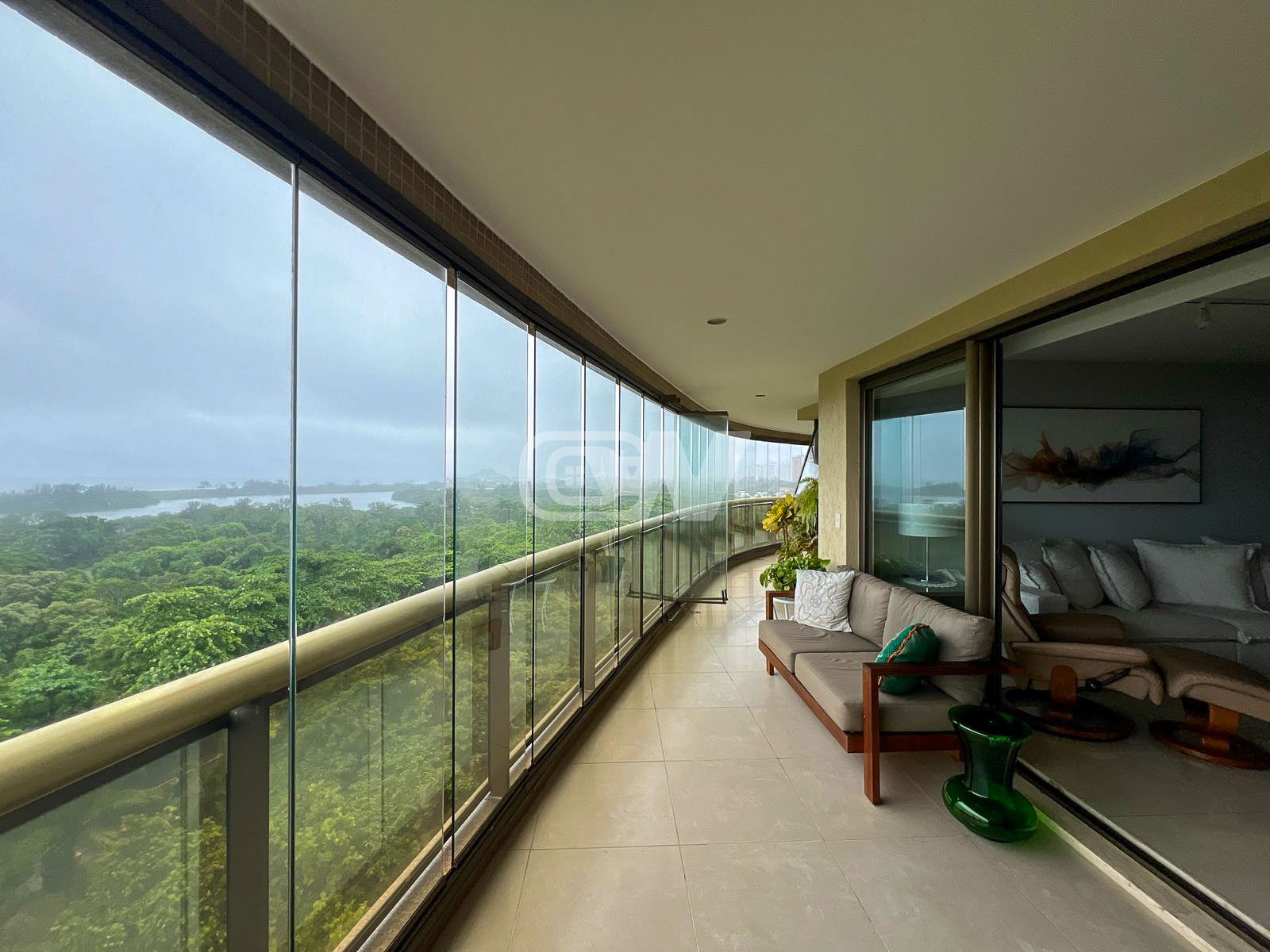 Ampla sala em vários ambientes, rico em luz natural e ventilação, piso em porcelanato e climatização através de ar condicionado, com lavabo. Varanda com cortina de vidro, debruçada em uma vista incrível da lagoa e mar.