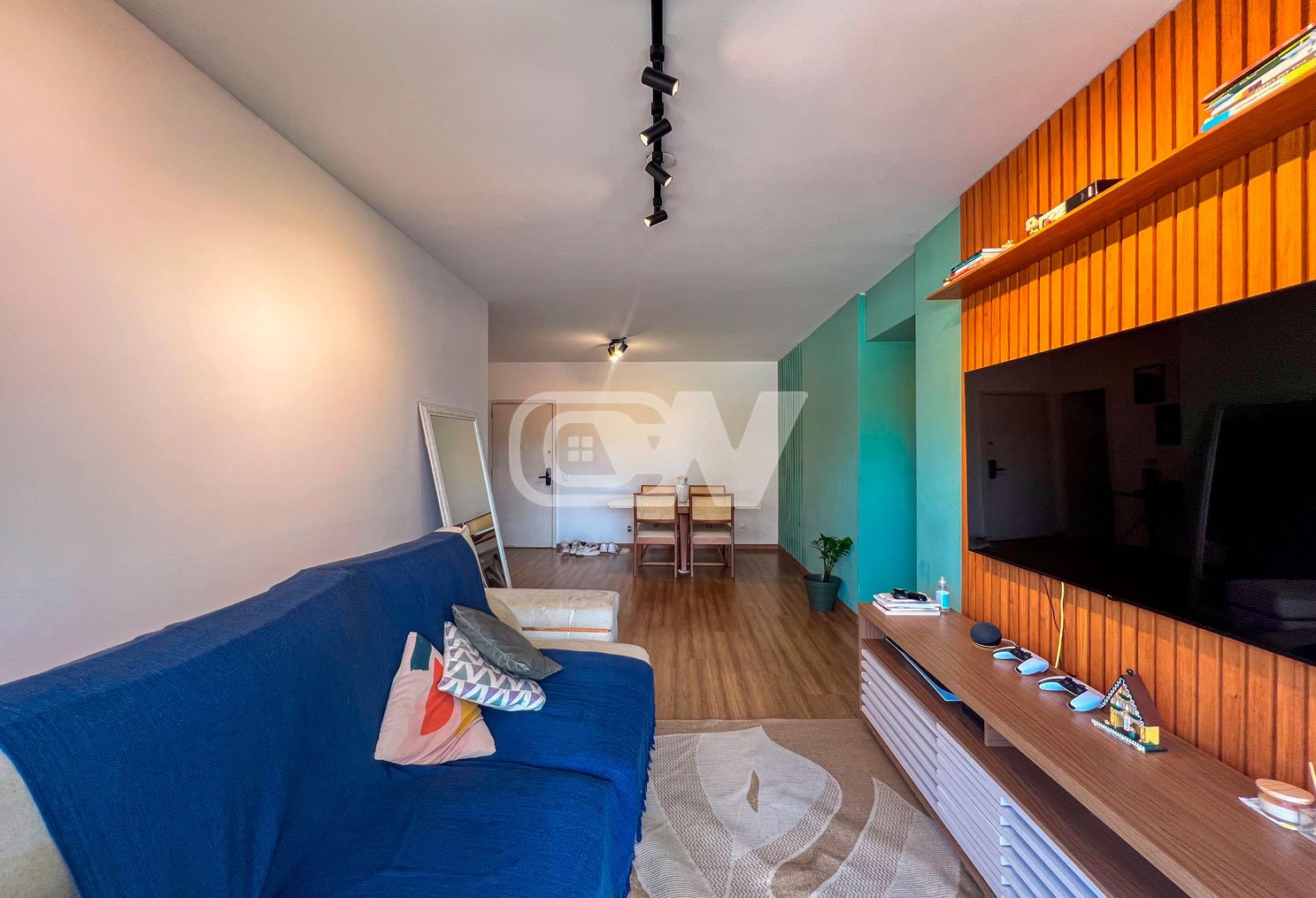 Ótimo apartamento linear, ampla sala em vários ambientes, projeto de iluminação, varanda. Banheiro, 1 quarto com closet. Cozinha planejada, área de serviço, dependência revertido para escritório repleto de armários, banheiro completo.