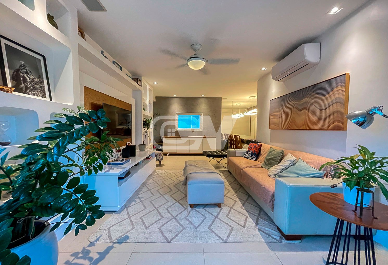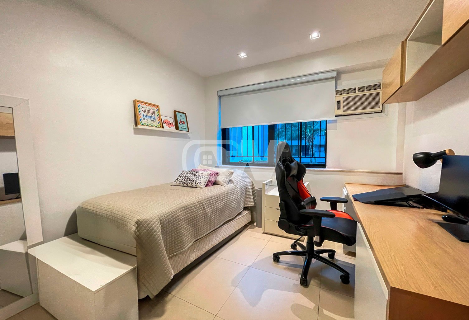 Sala em 2 ambientes piso em porcelanato integrada a varanda, iluminação indireta, ambiente climatizado, são três (3) quartos sendo uma (1) suítes, um banheiro social completo, todos os quartos repletos com armários planejados, a suíte com closet. Cozinha planejada, área de serviço e dependência completa. Apartamento com ótima planta e localização privilegiada dentro do condomínio.