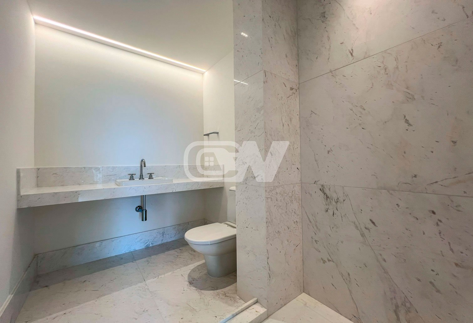 A área de serviço foi planejada para oferecer funcionalidade e praticidade, composta por copa e cozinha amplas, com ilha central e bancadas em materiais de alta qualidade, além de despensa. O imóvel conta ainda com dependência completa, com dois quartos (sendo uma suíte) e banheiro completo de apoio.