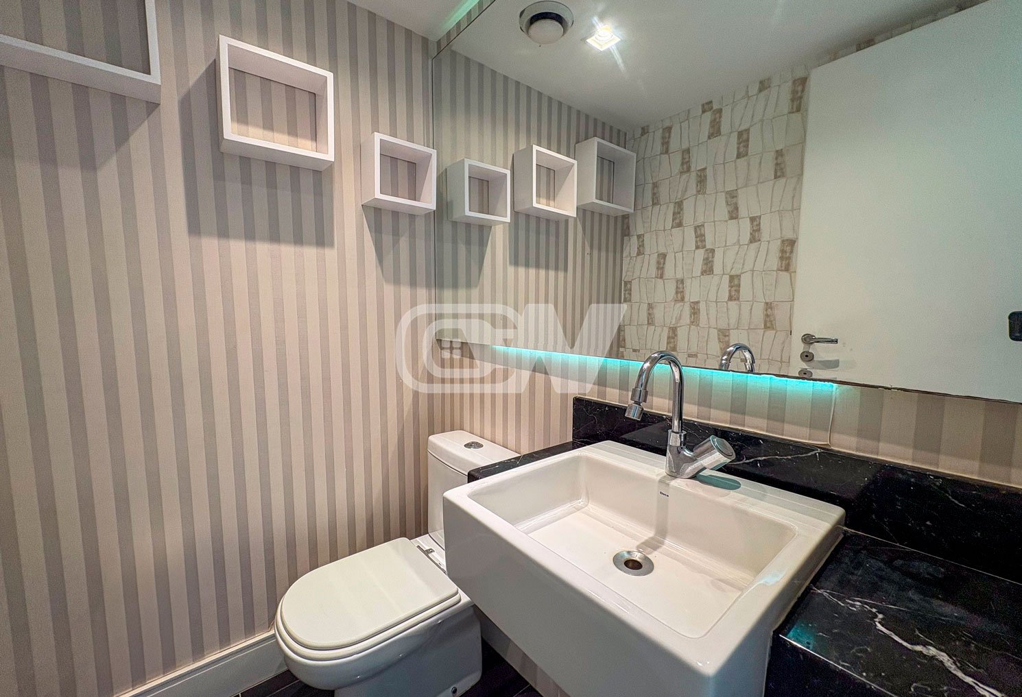 Sala de estar em dois ambientes, lavabo e sala intima, quatro suítes com splits e armários, incluindo a máster que possui closet e cuba dupla.