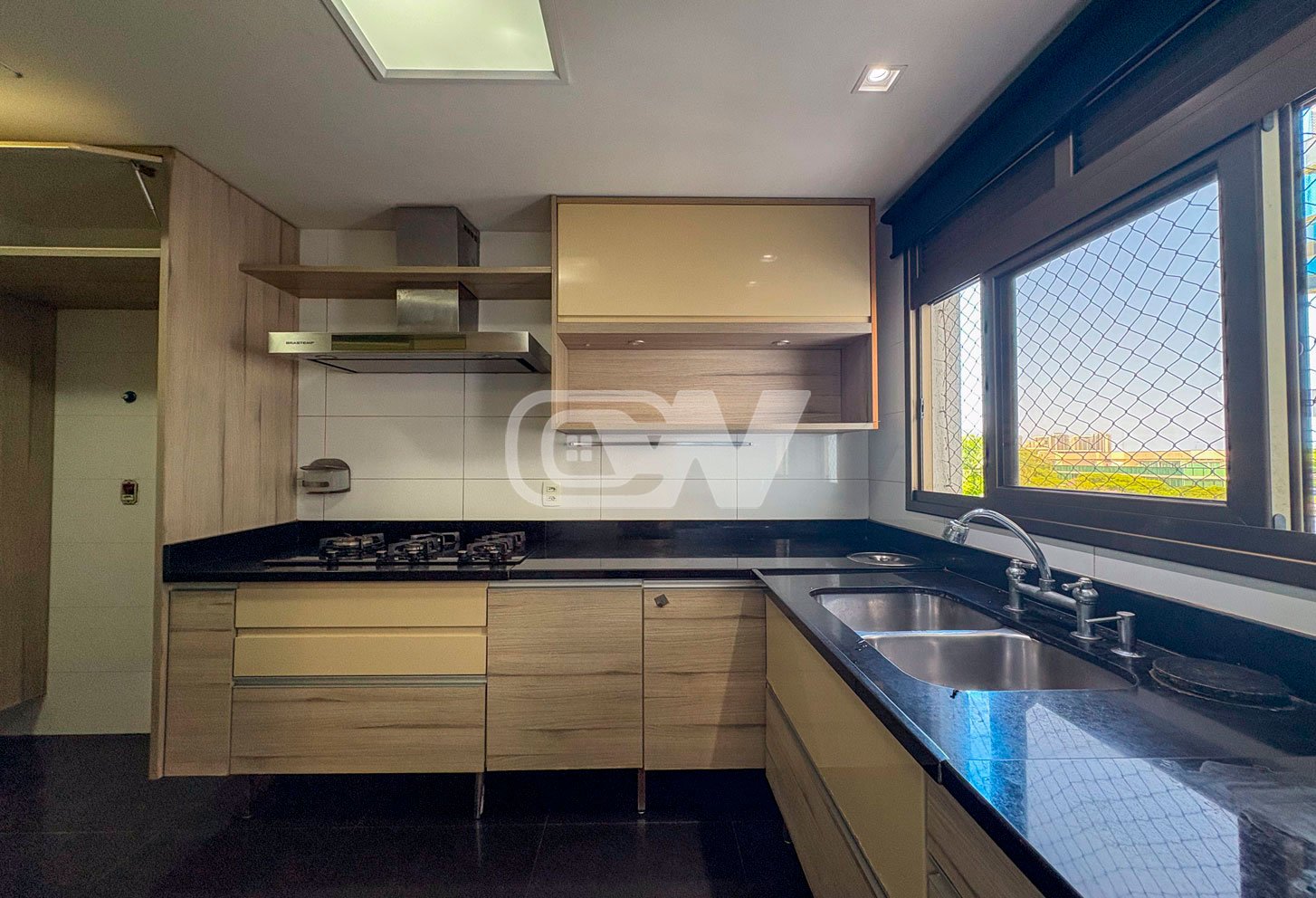 Cozinha ampla com armários planejados, entrada exclusiva pela área de serviço, possui dependência completa, varandão com espaço gourmet.