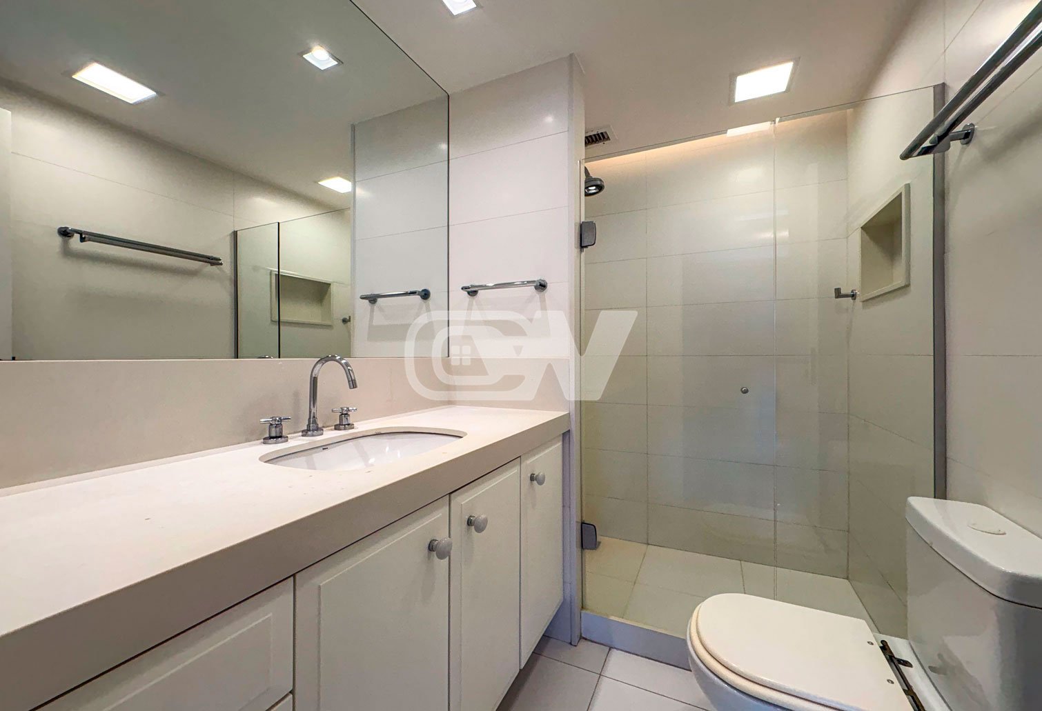 O apartamento dispõe ainda de lavabo, cozinha copa com armários sob medida, área de serviço funcional e despensa.