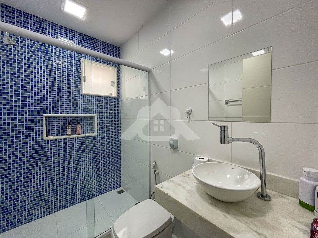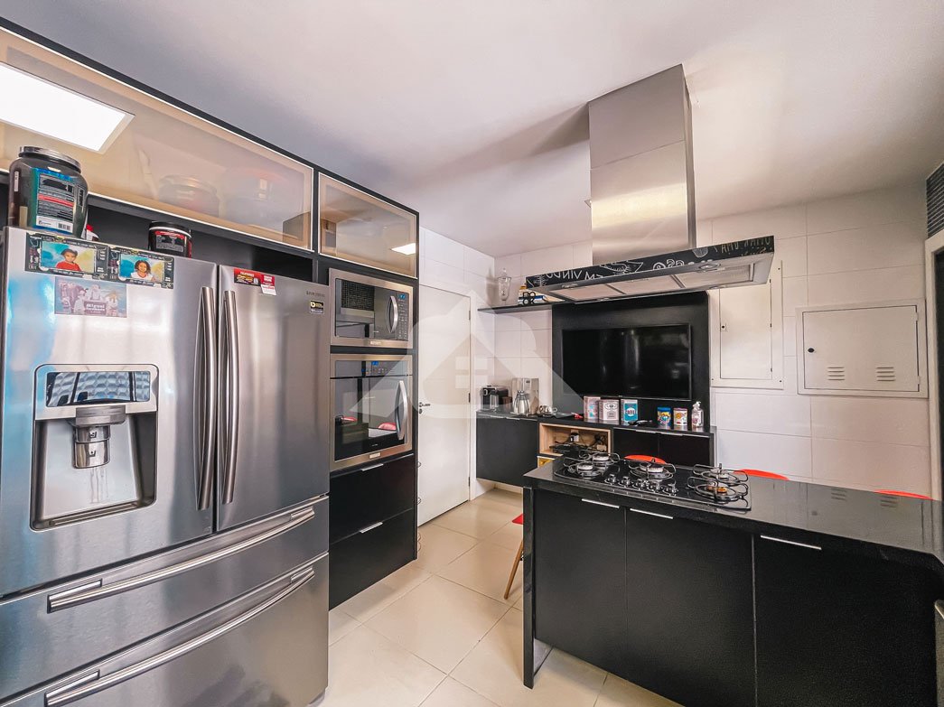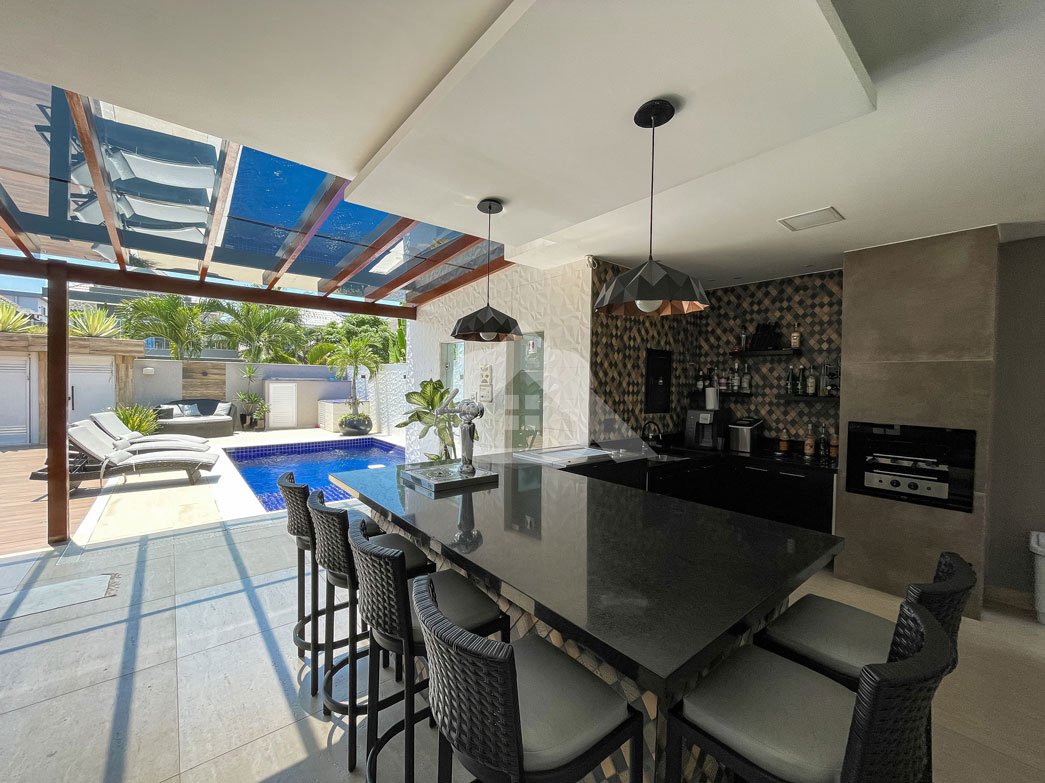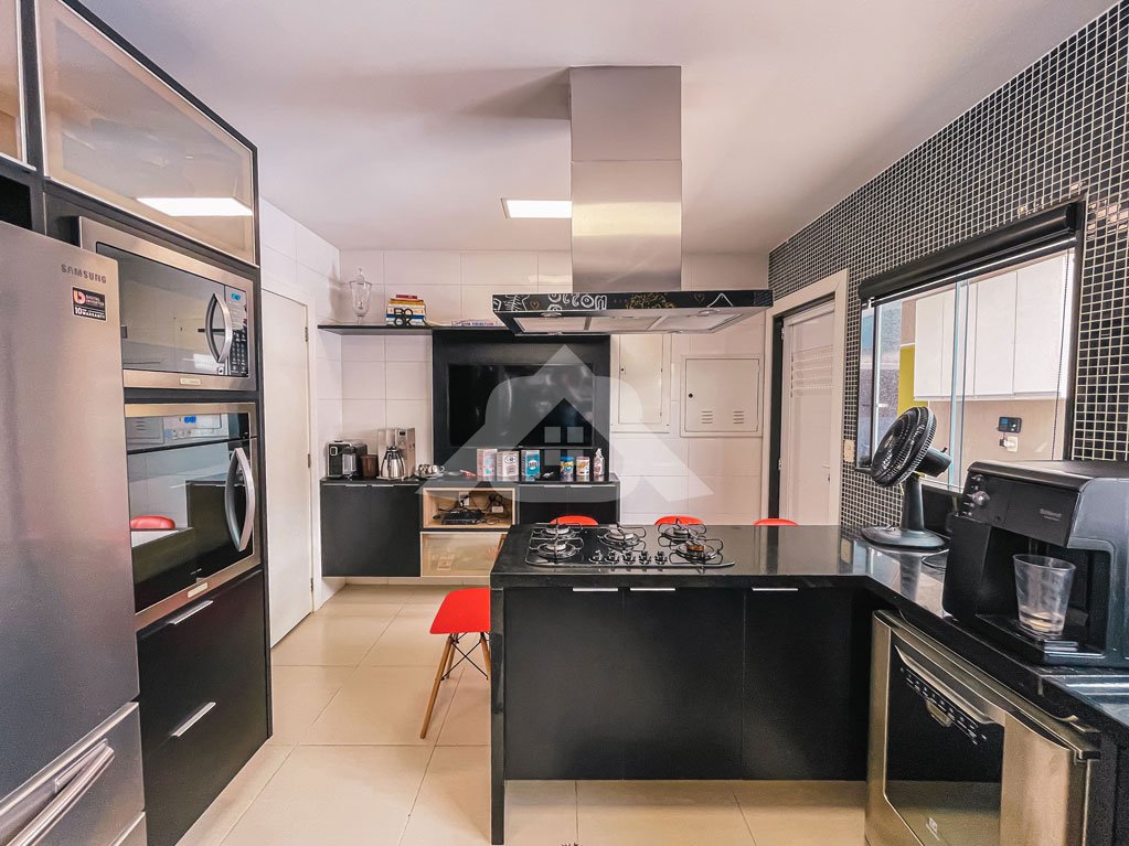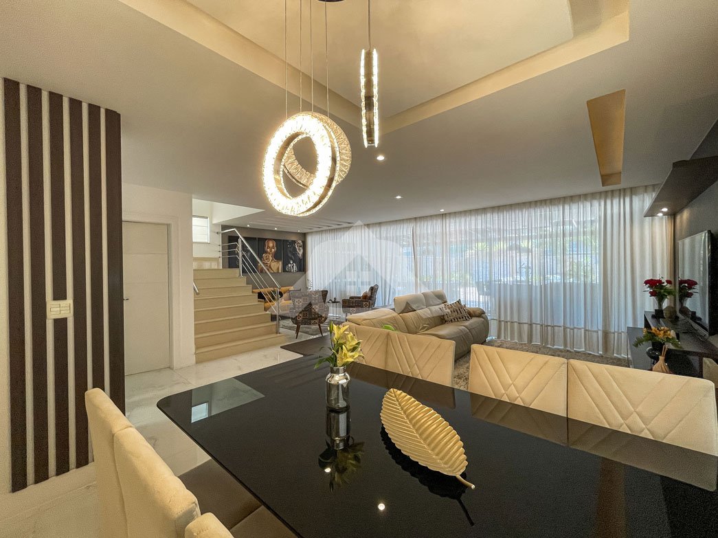 1º Pavimento: Espaçosa sala com três ambientes, banheiro social, lavabo, cozinha com bancada em granito, cooktop, coifa, repleta de armários, área de serviço, lavanderia e dependência completa.
