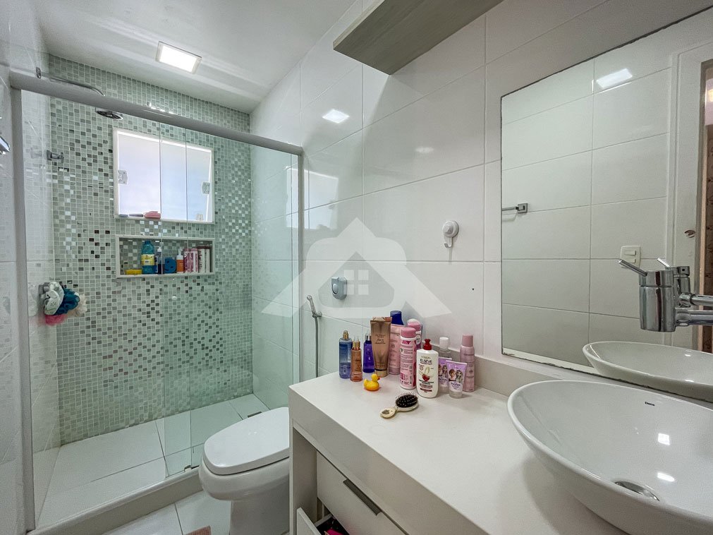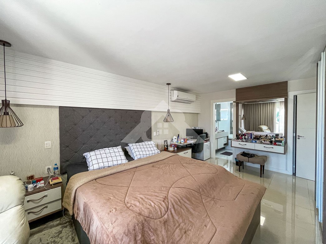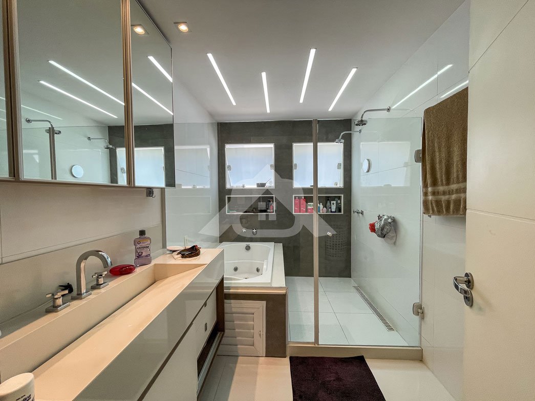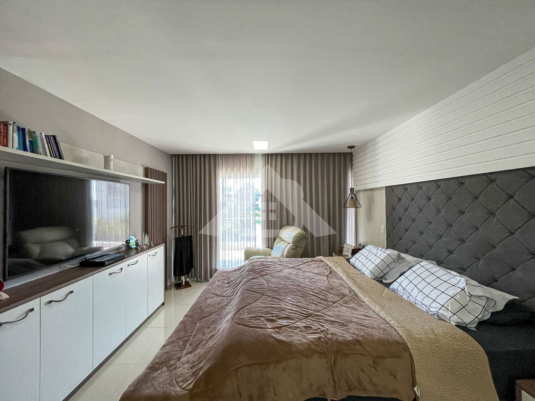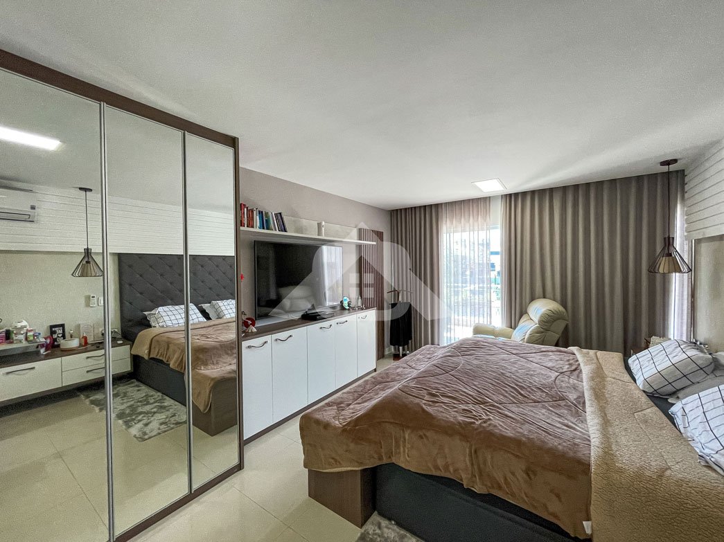 2º Pavimento: Três suítes, sendo a suíte máster o destaque, com hidromassagem, cuba dupla, closet e uma varanda privativa.