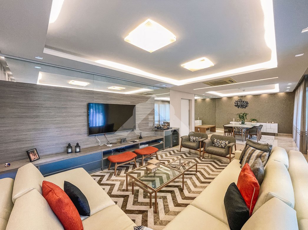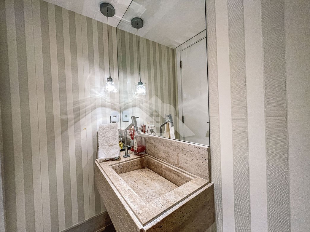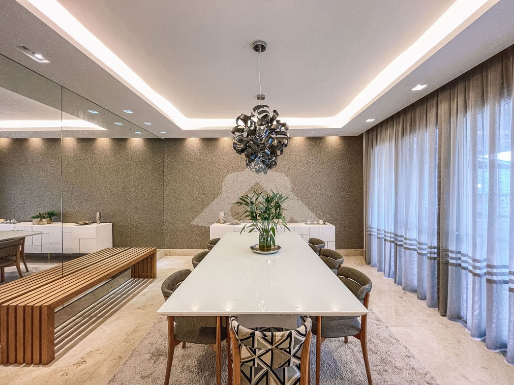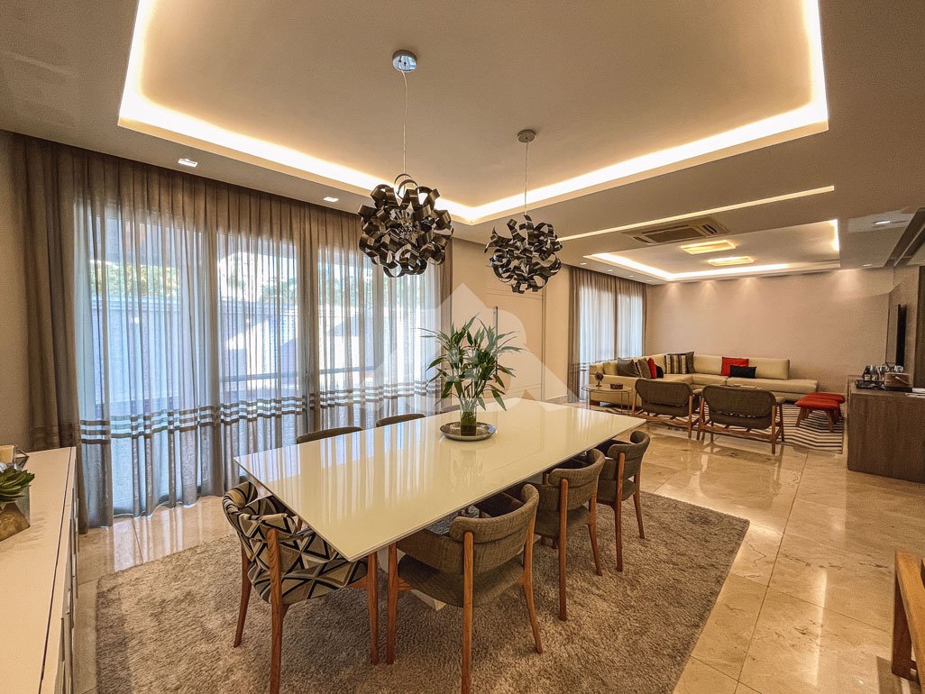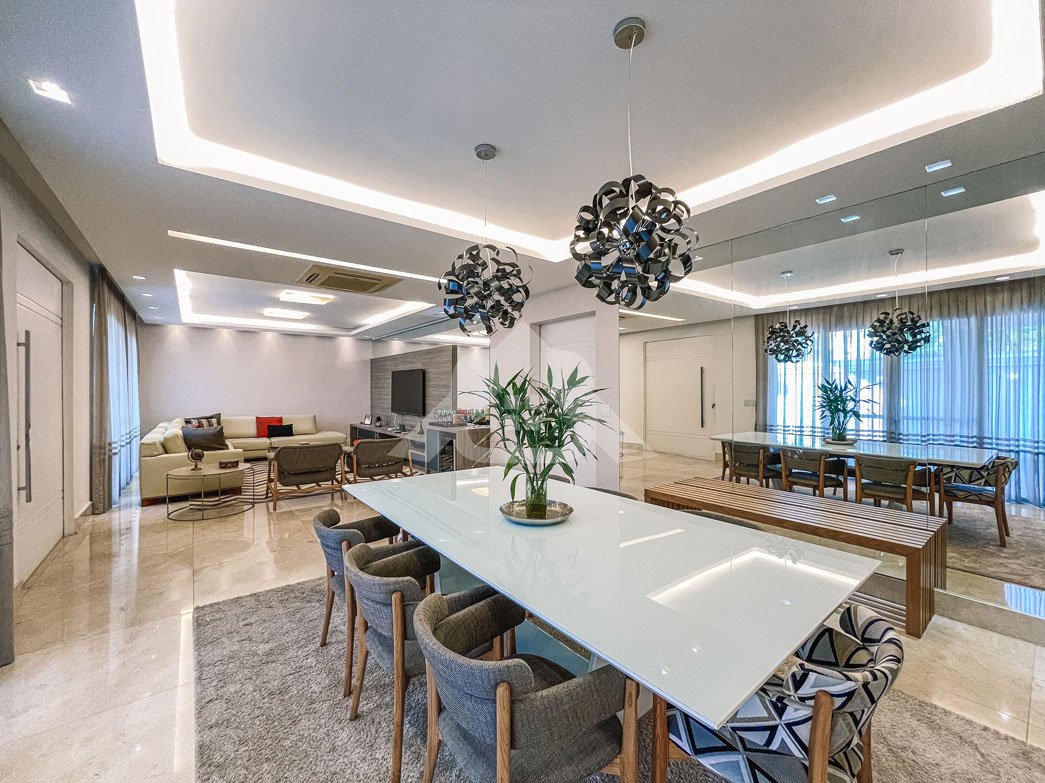 1º Pavimento: Salão em vários ambientes todo com piso em mármore, projeto de iluminação direto e indireto, climatizado com ar condicionado modelo K7, Lavabo decorado com bancada esculpida, suíte de apoio, copa cozinha com armários planejados, área de serviço e dependência completa.