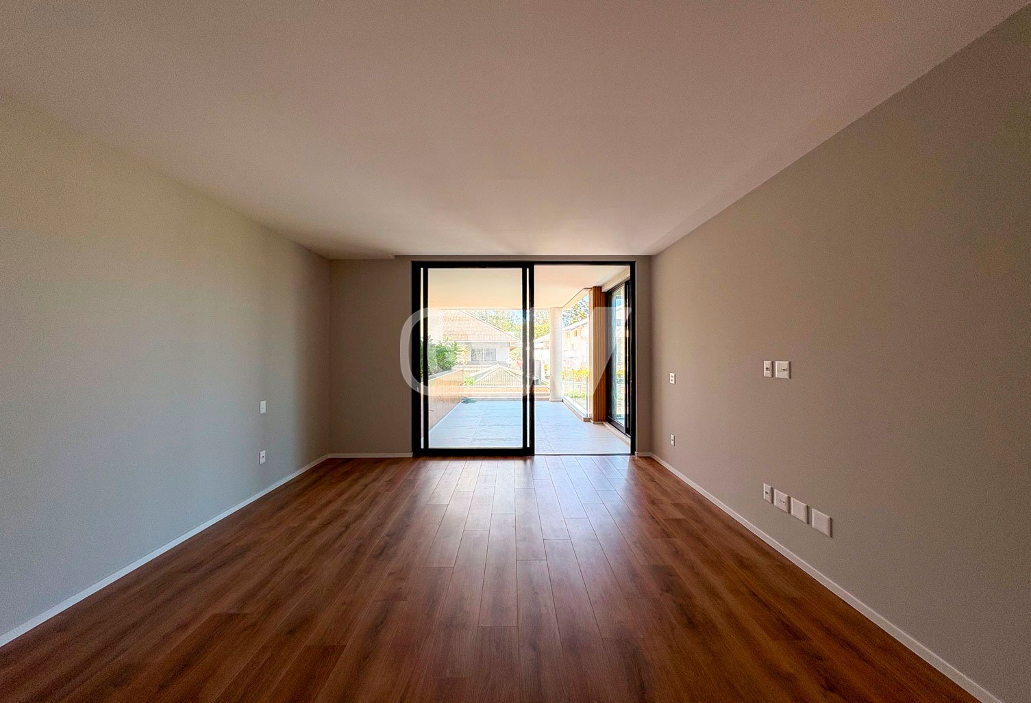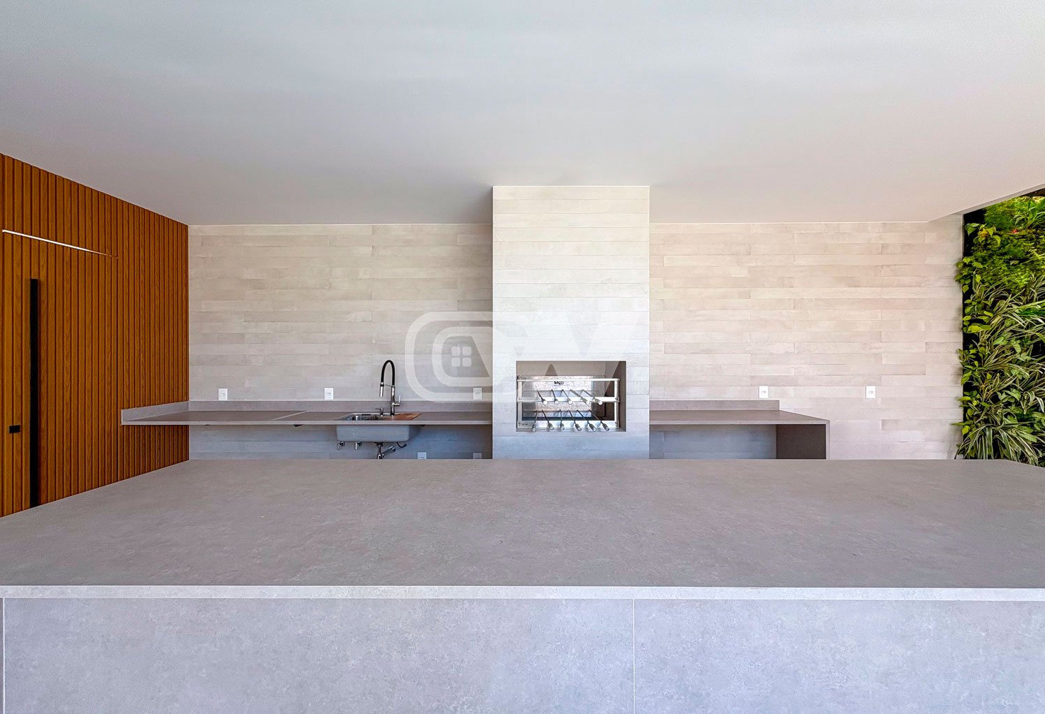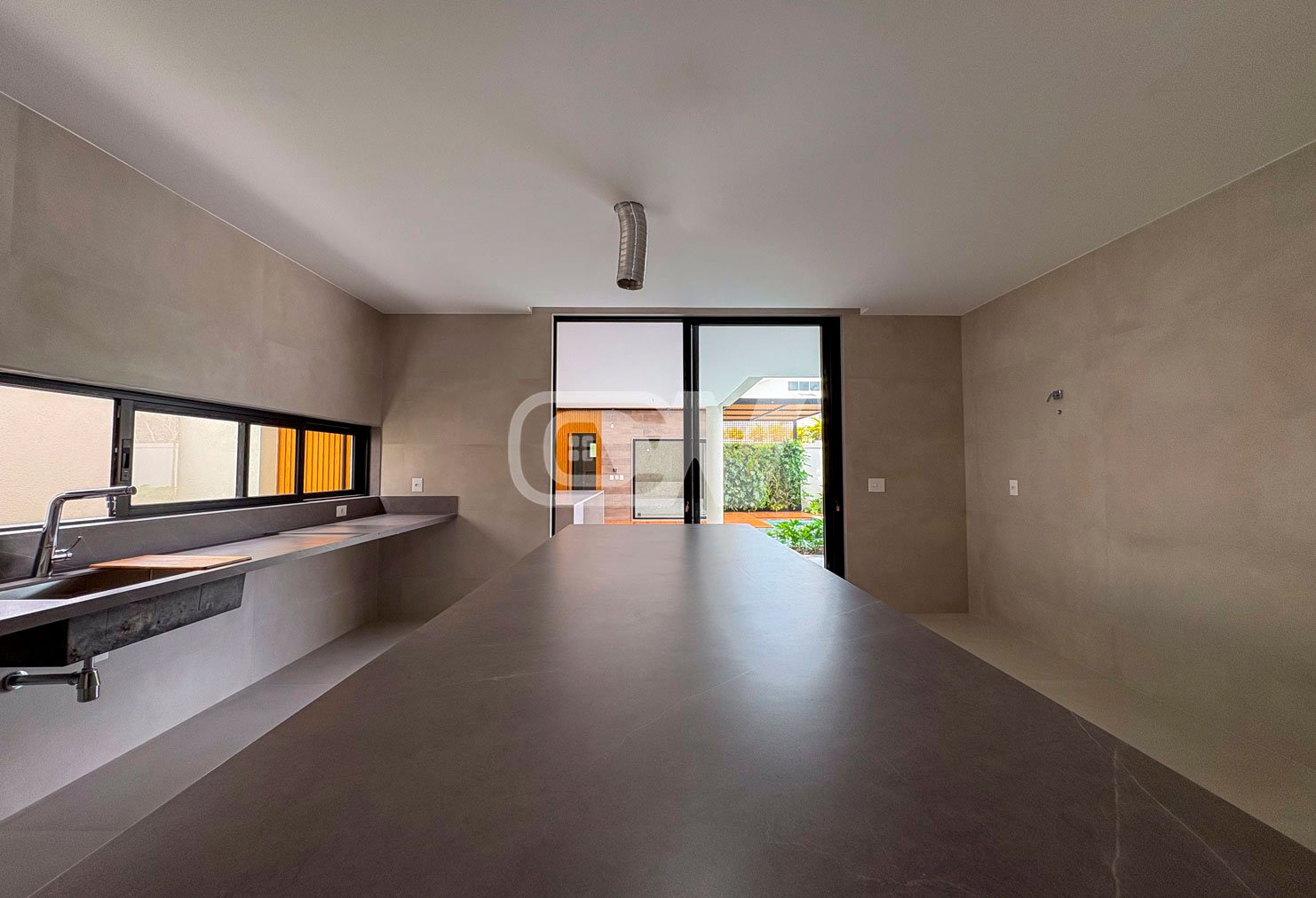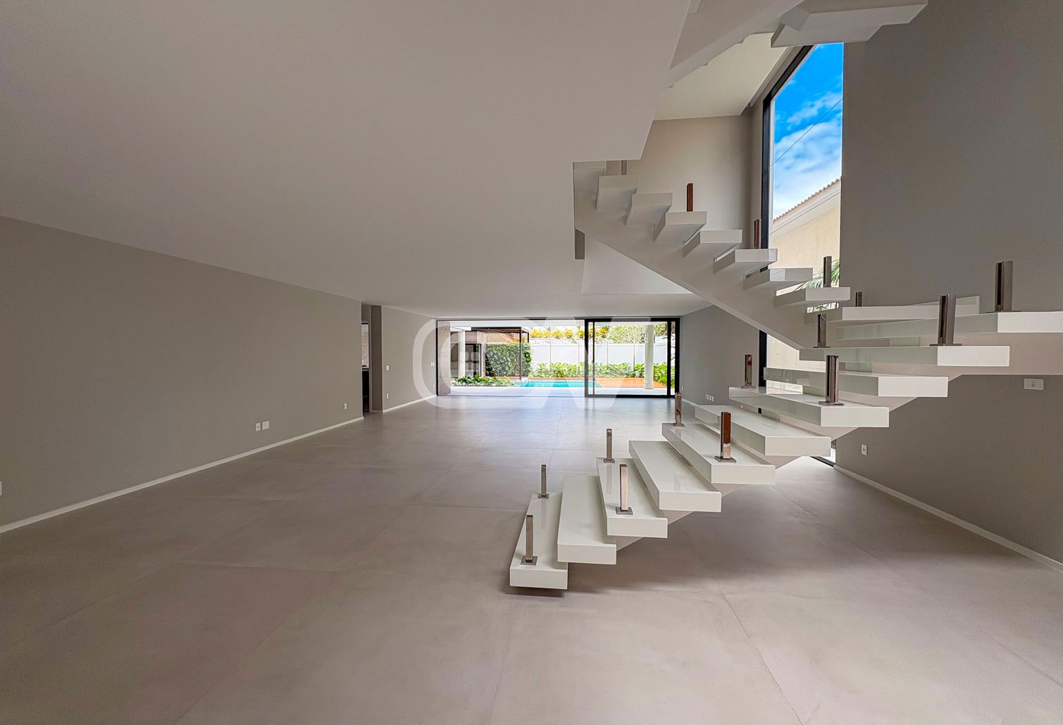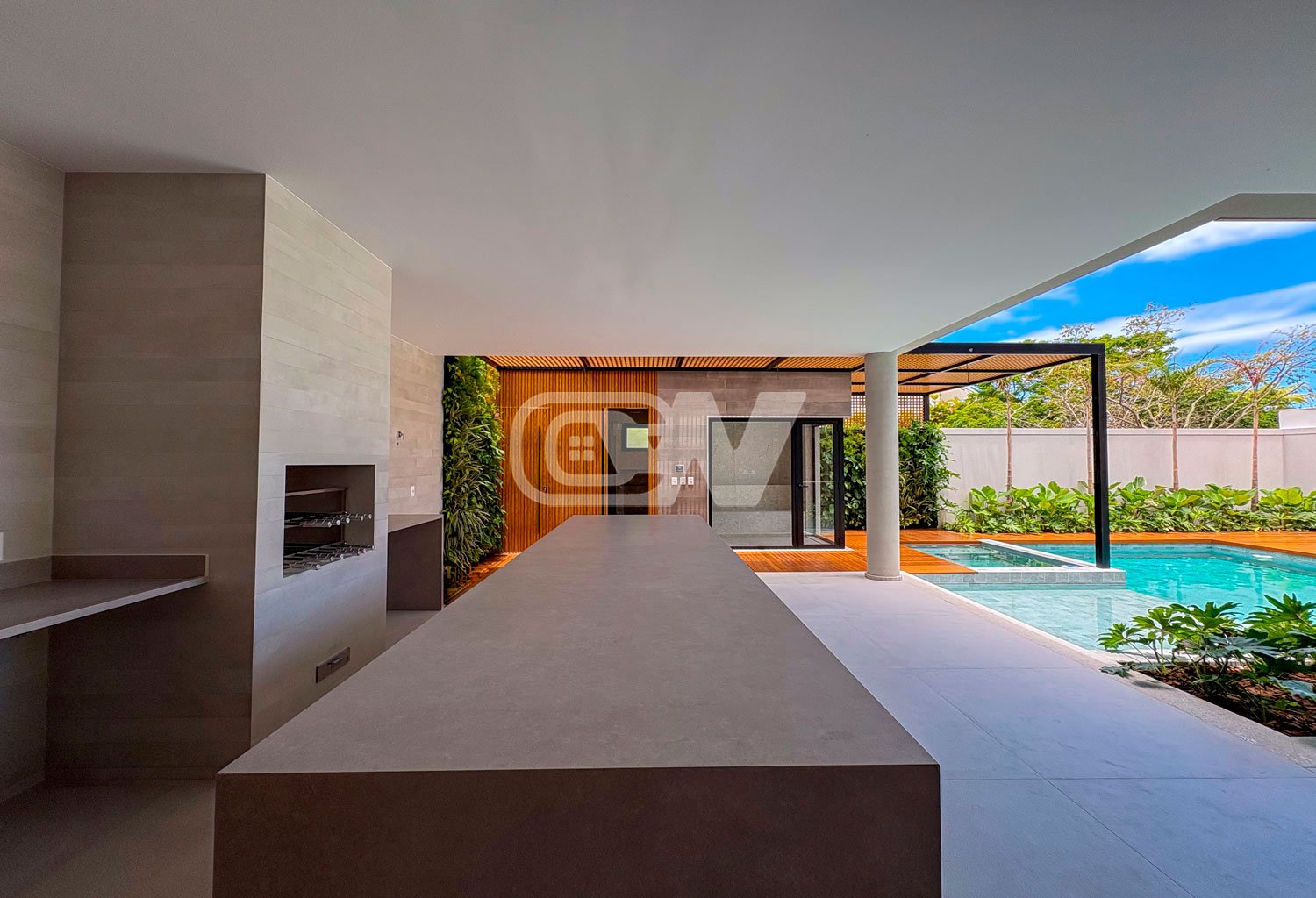 1º PAVIMENTO: Hall de entrada com pé direito duplo, salão em vários ambientes, suíte térrea, ampla copa cozinha com ilha, área de serviço e dependência completa.