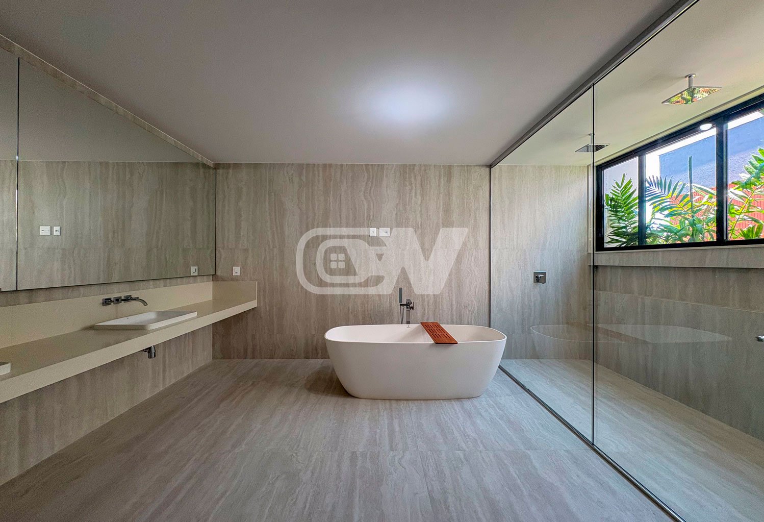 2º PAVIMENTO: Quatro amplas suítes, todas com closets, sendo a suíte principal com closet duplo e salão de banho com bancada dupla e banheira de hidromassagem.