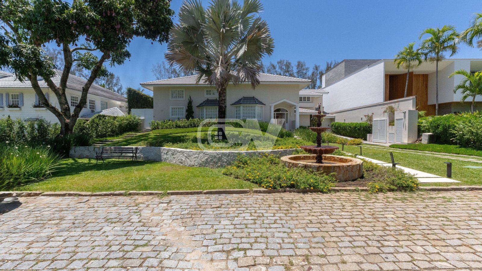 1° Pavimento: Hall de entrada, sala dividida em vários ambientes com pé direito duplo, lavabo, lavabo, duas suítes térreas e escritório.