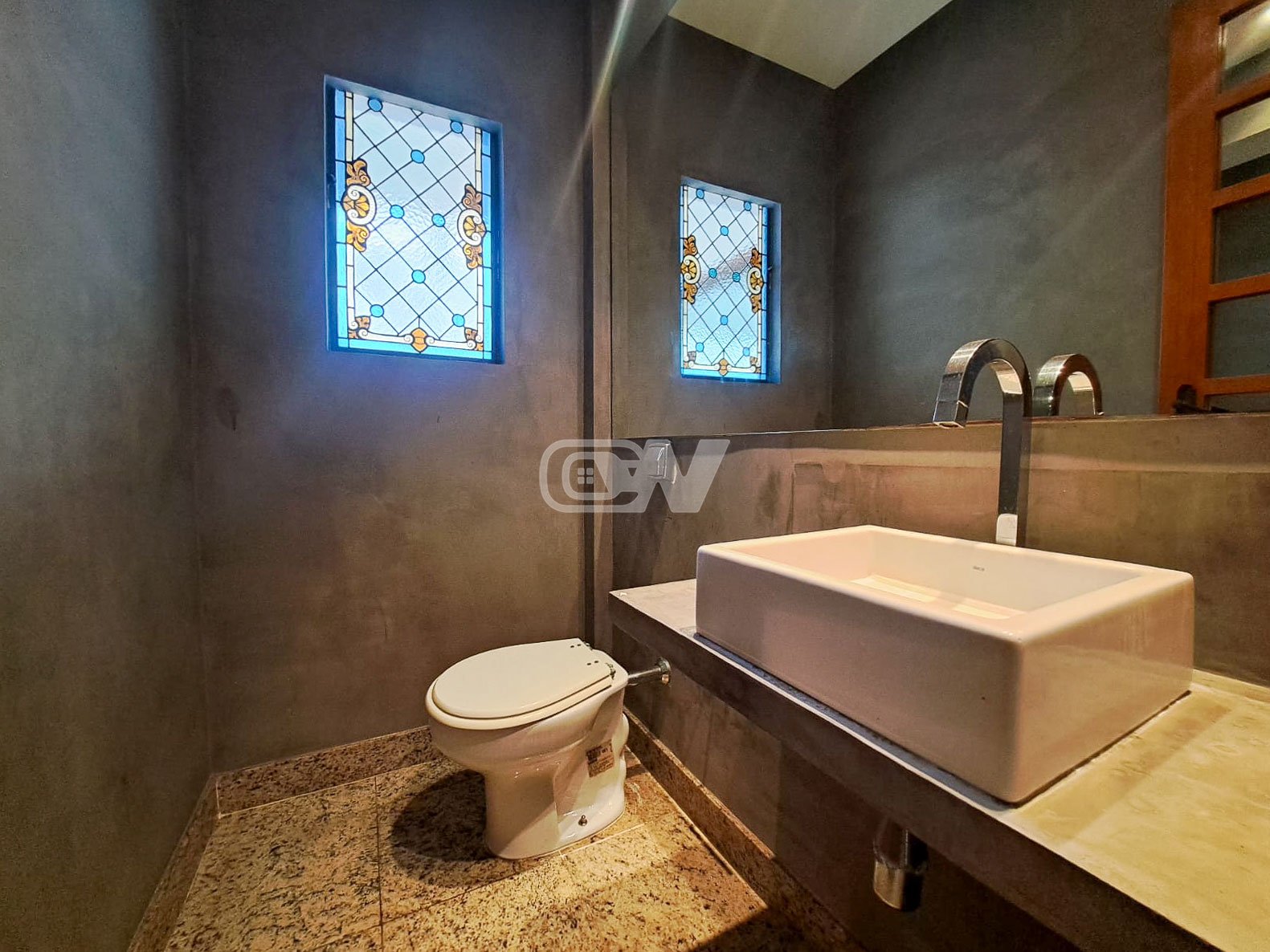 1º PAVIMENTO: Sala ampla de estar com piso em granito, sala de jantar, lavabo decorado, cozinha com armários planejados e piso em porcelanato, área de serviço, com duas dependências de funcionários completas.
