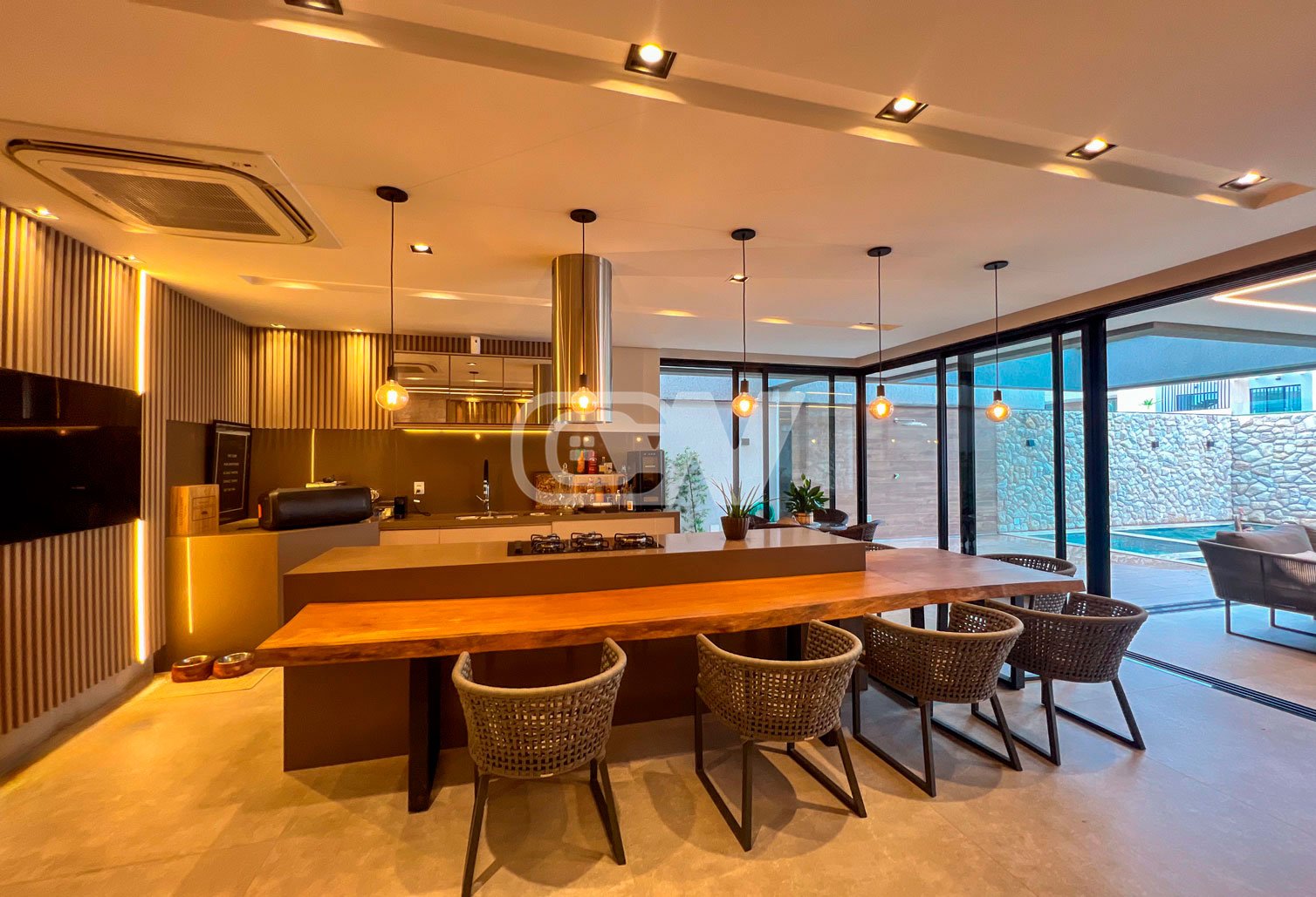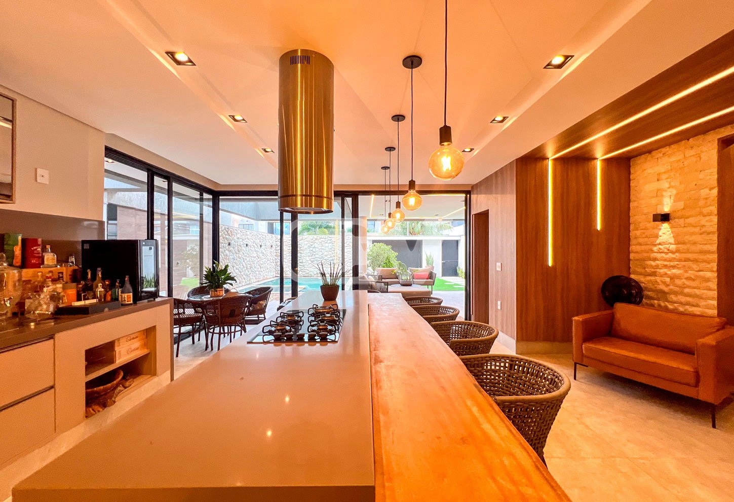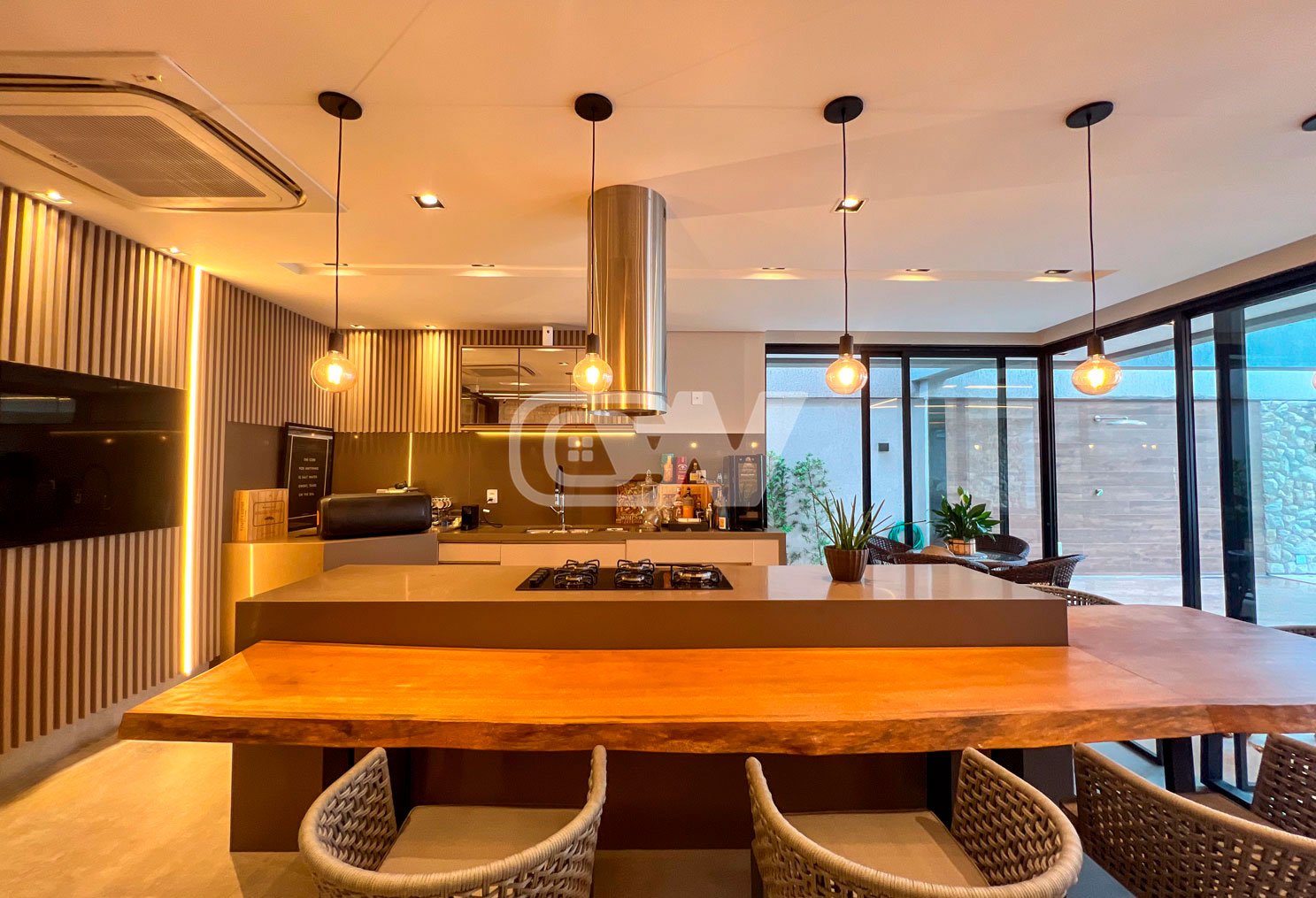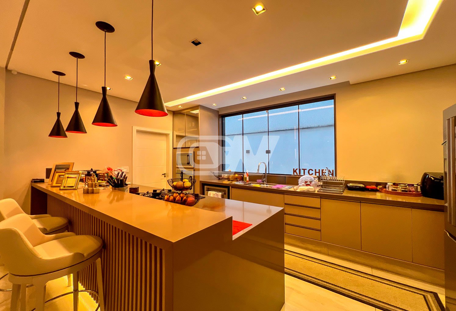 1º Pavimento: Hall de entrada com Pé direito duplo, projeto de iluminação, suíte térrea, Lavabo decorado, cozinha com ilha, repleta de armários.
