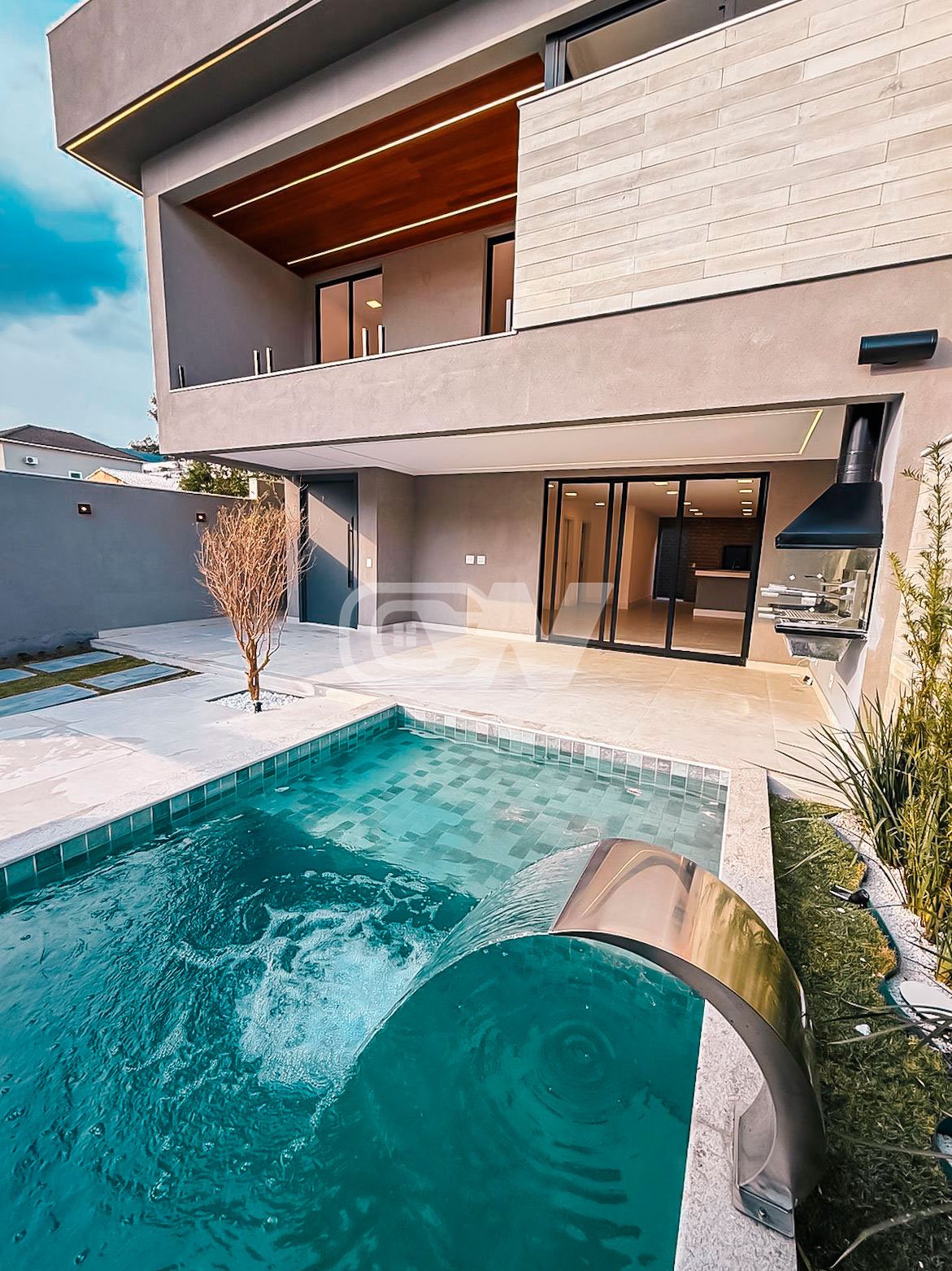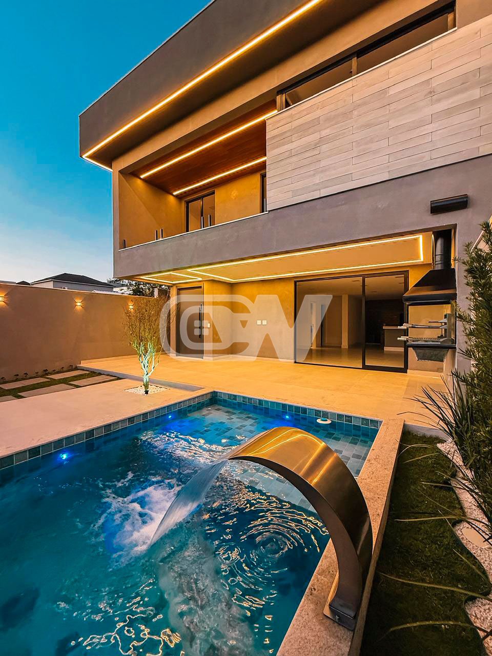 Logo no primeiro pavimento, o imóvel encanta pela integração e pelo alto padrão de acabamento. A área externa é um verdadeiro convite para receber amigos e familiares: ampla área gourmet com churrasqueira em vidro, piscina com cascata, paisagismo cuidadosamente planejado e vaga de garagem.