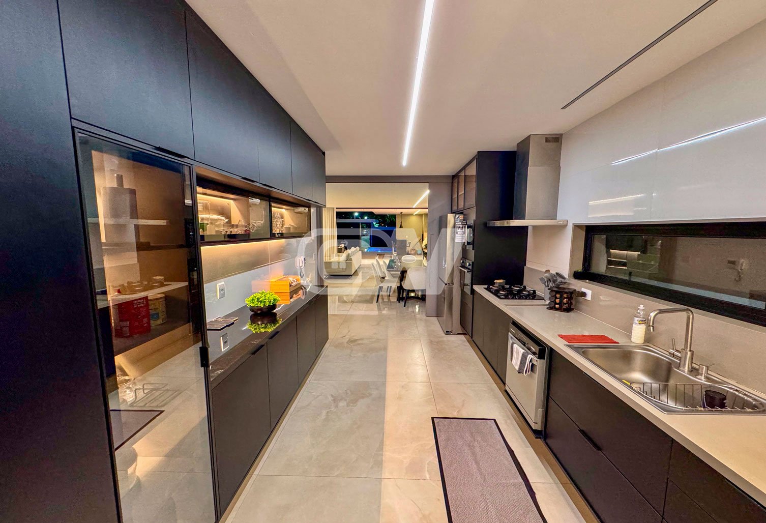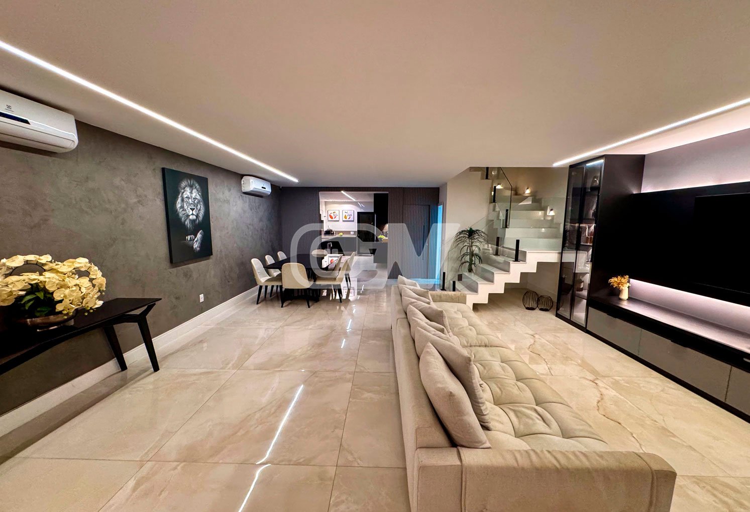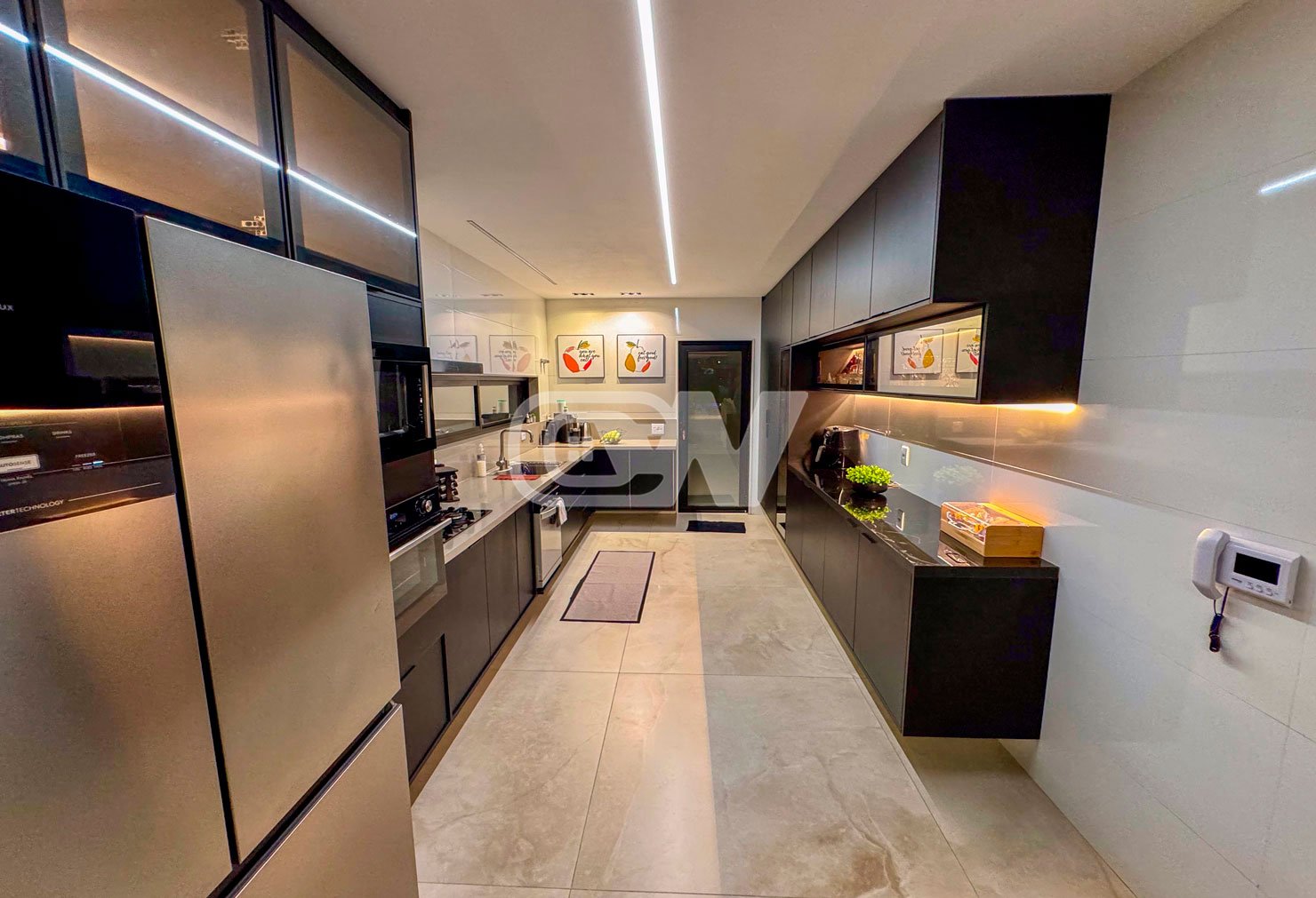 Além disso, a área gourmet é um destaque por si só, oferecendo um encantador jardim, uma -piscina com cascata, hidromassagem e uma churrasqueira completa com uma bancada.