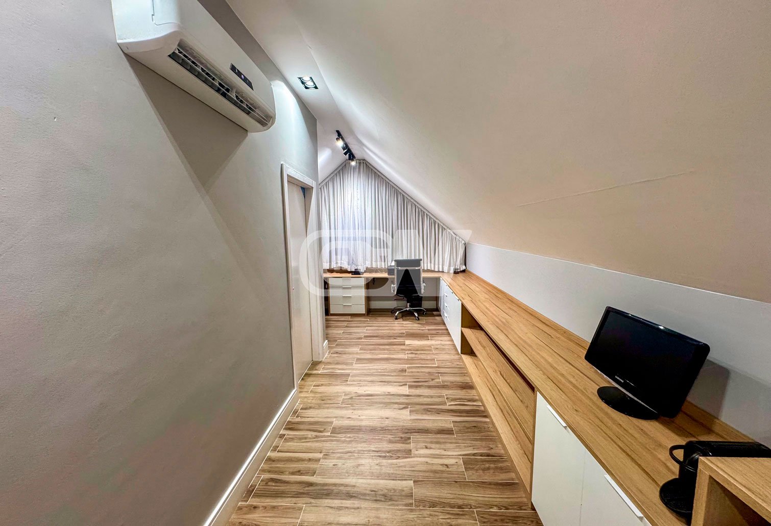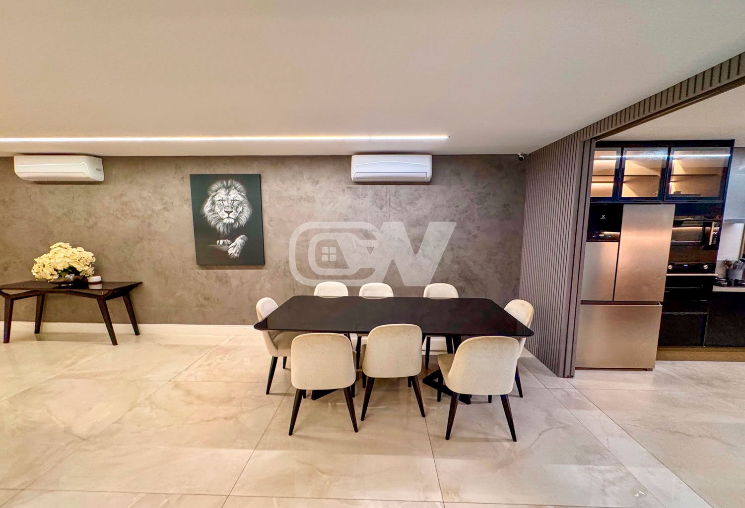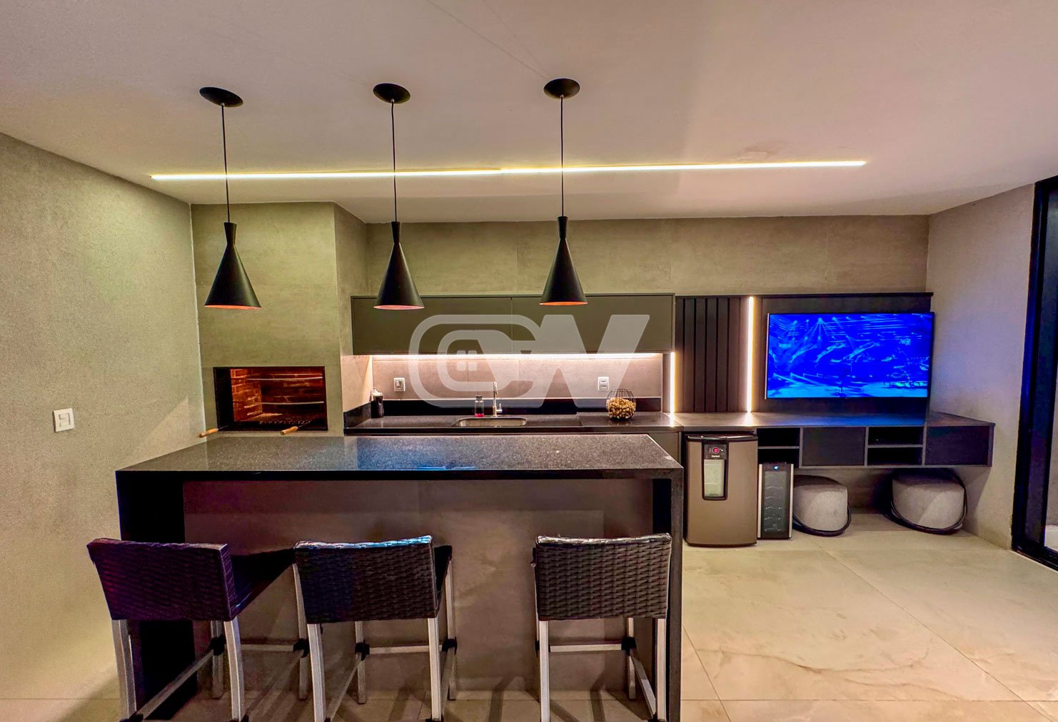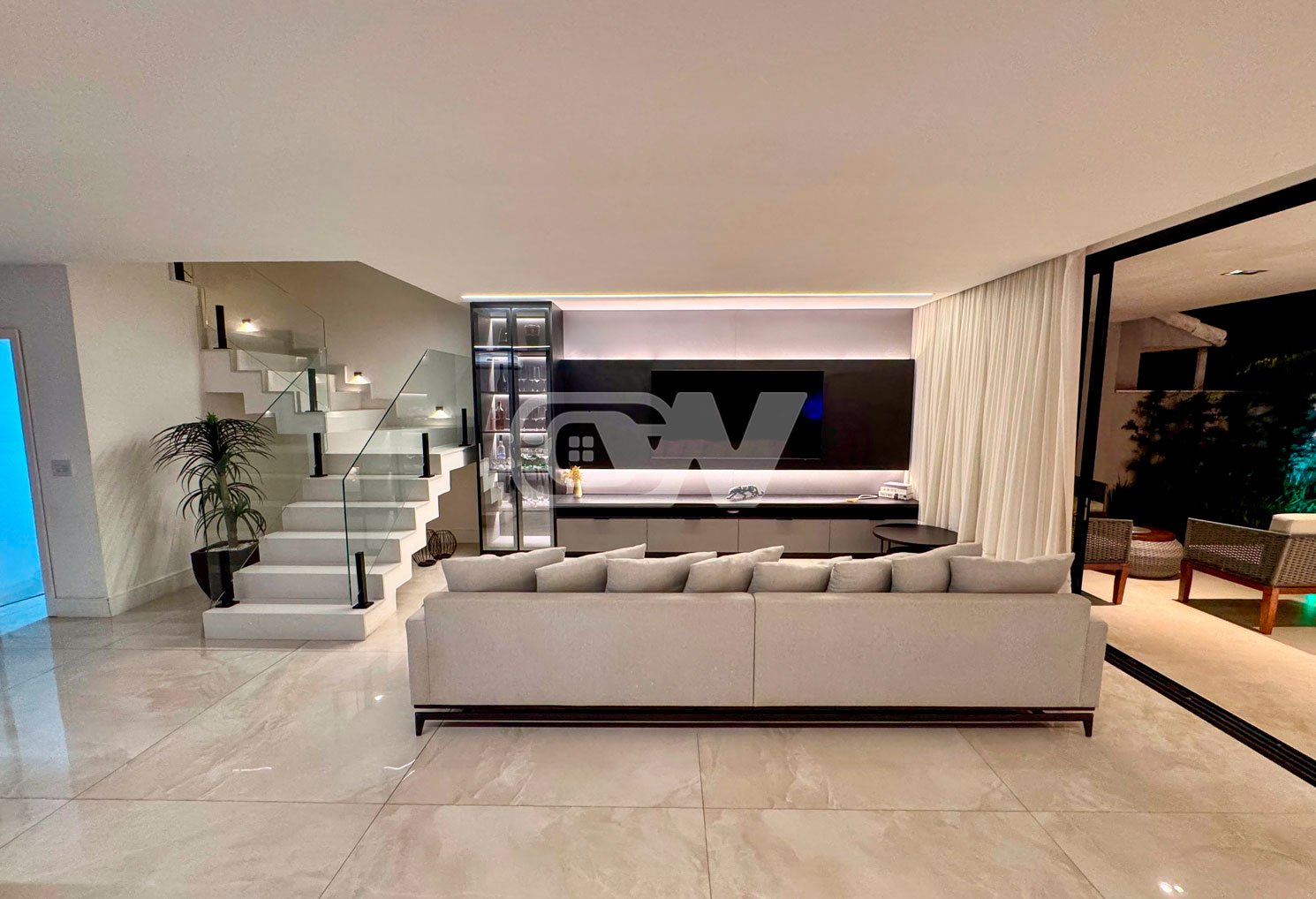 Além disso, a área gourmet é um destaque por si só, oferecendo um encantador jardim, uma -piscina com cascata, hidromassagem e uma churrasqueira completa com uma bancada.