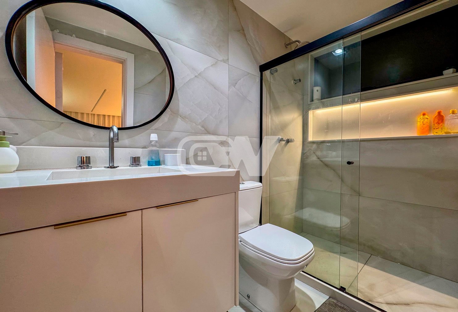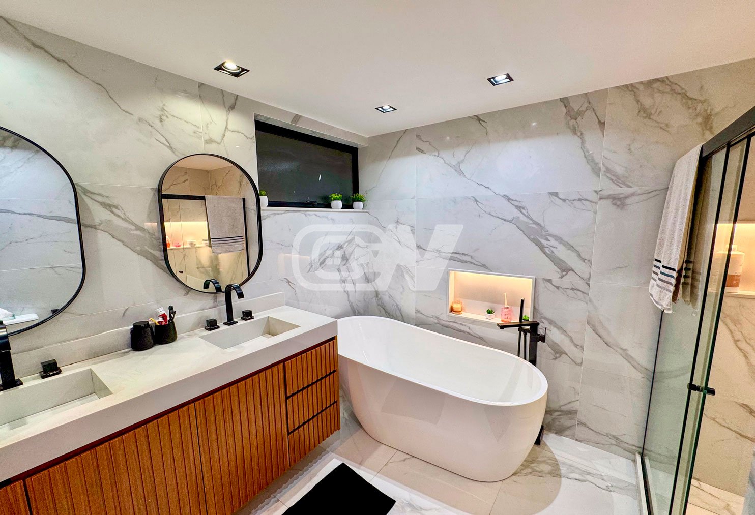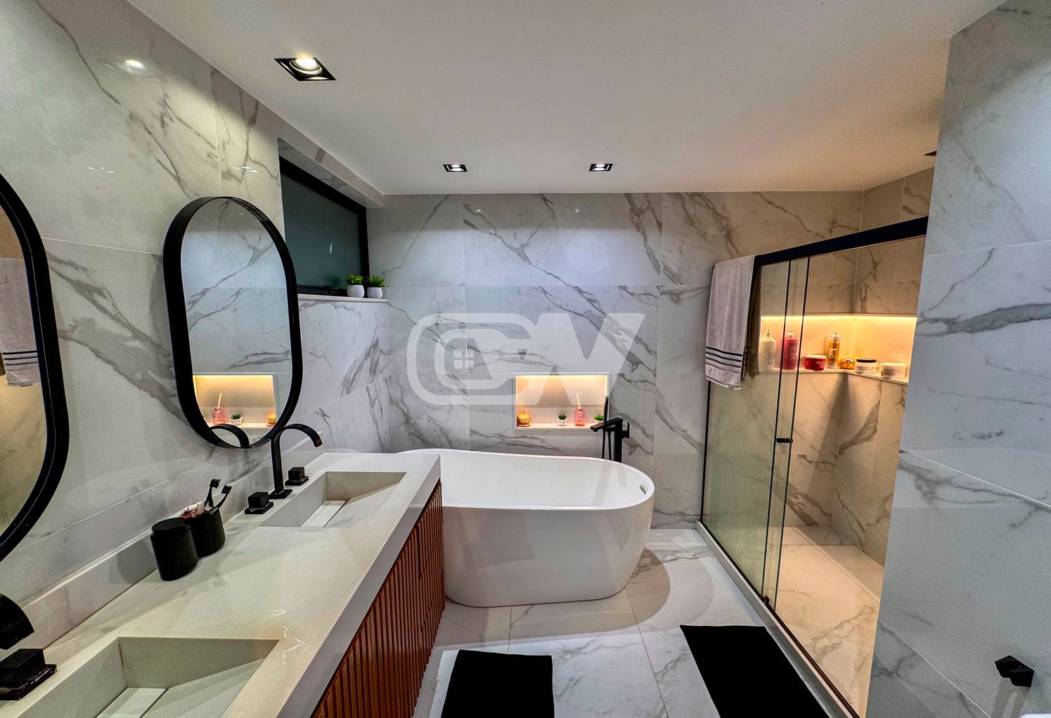 • Suíte master com varanda, Cuba dupla e closet espaçoso para suas necessidades de armazenamento.