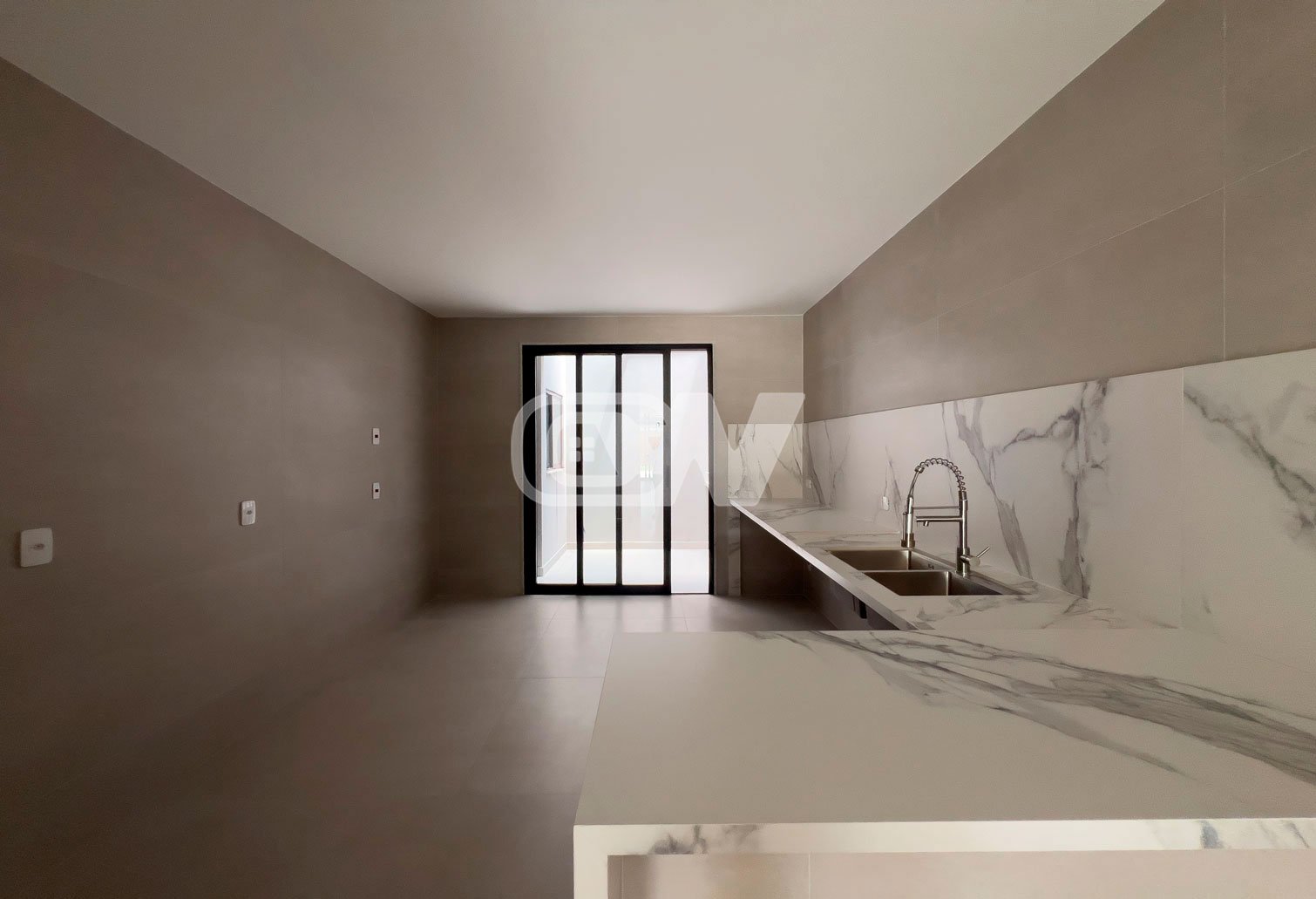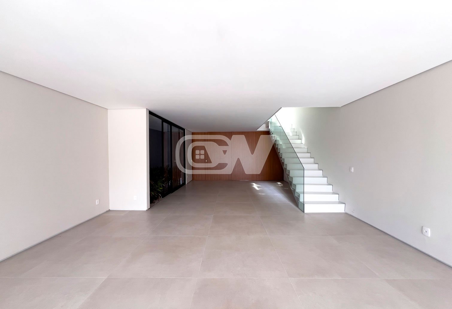 1° pavimento: composto de uma ampla sala, dividida em dois ambientes e integrada a uma cozinha em conceito aberto, lavabo, suíte térrea, área de serviço e dependência de empregada.