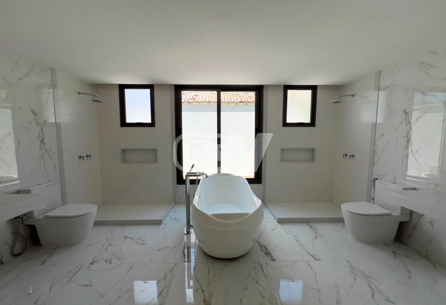 Composto por quatro suítes espaçosas, todas com closet e varandas que proporcionam vistas privilegiadas. A suíte master é um verdadeiro refúgio: amplo closet, salão de banho luxuoso com bancada dupla, hidromassagem e um jardim externo integrado, criando uma atmosfera única de relaxamento e bem-estar.