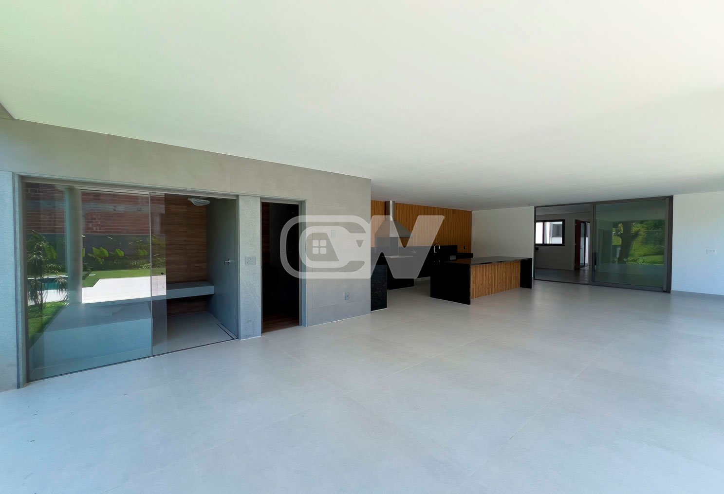 O lazer é um grande diferencial desta propriedade. Conta com piscina de raia, deck molhado e hidromassagem, estrategicamente posicionados para aproveitar o sol durante todo o dia. O espaço gourmet dispõe de bancada extensa, acabamentos refinados, churrasqueira, banheiro de apoio e sauna. O amplo jardim gramado complementa o ambiente, com potencial para quadra esportiva ou projetos personalizados.