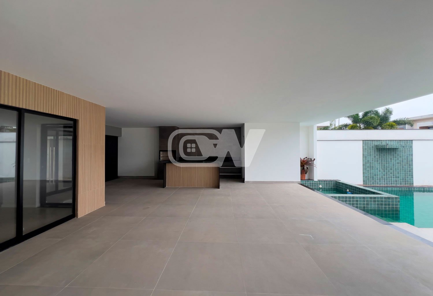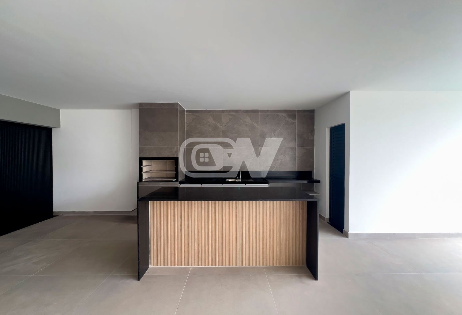 A área externa conta com 40 m² de lazer, com piscina, praia molhada, jacuzzi, deck e banheiro de apoio. A varanda gourmet possui cerca de 60 m², com churrasqueira, ilha central e ambientes de estar e jantar.