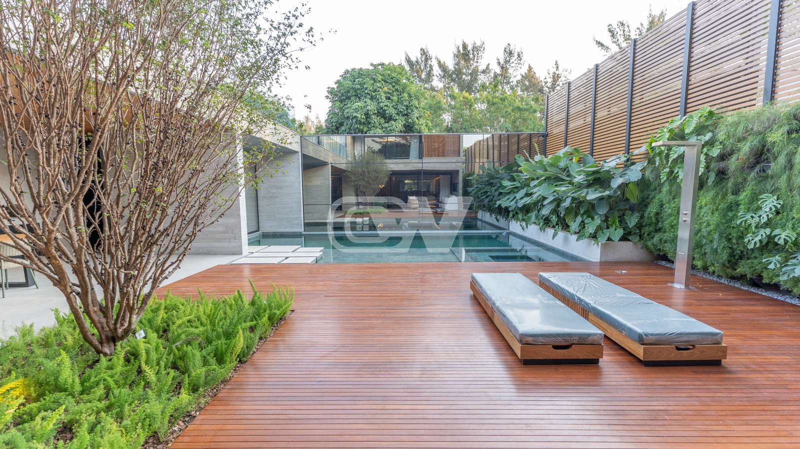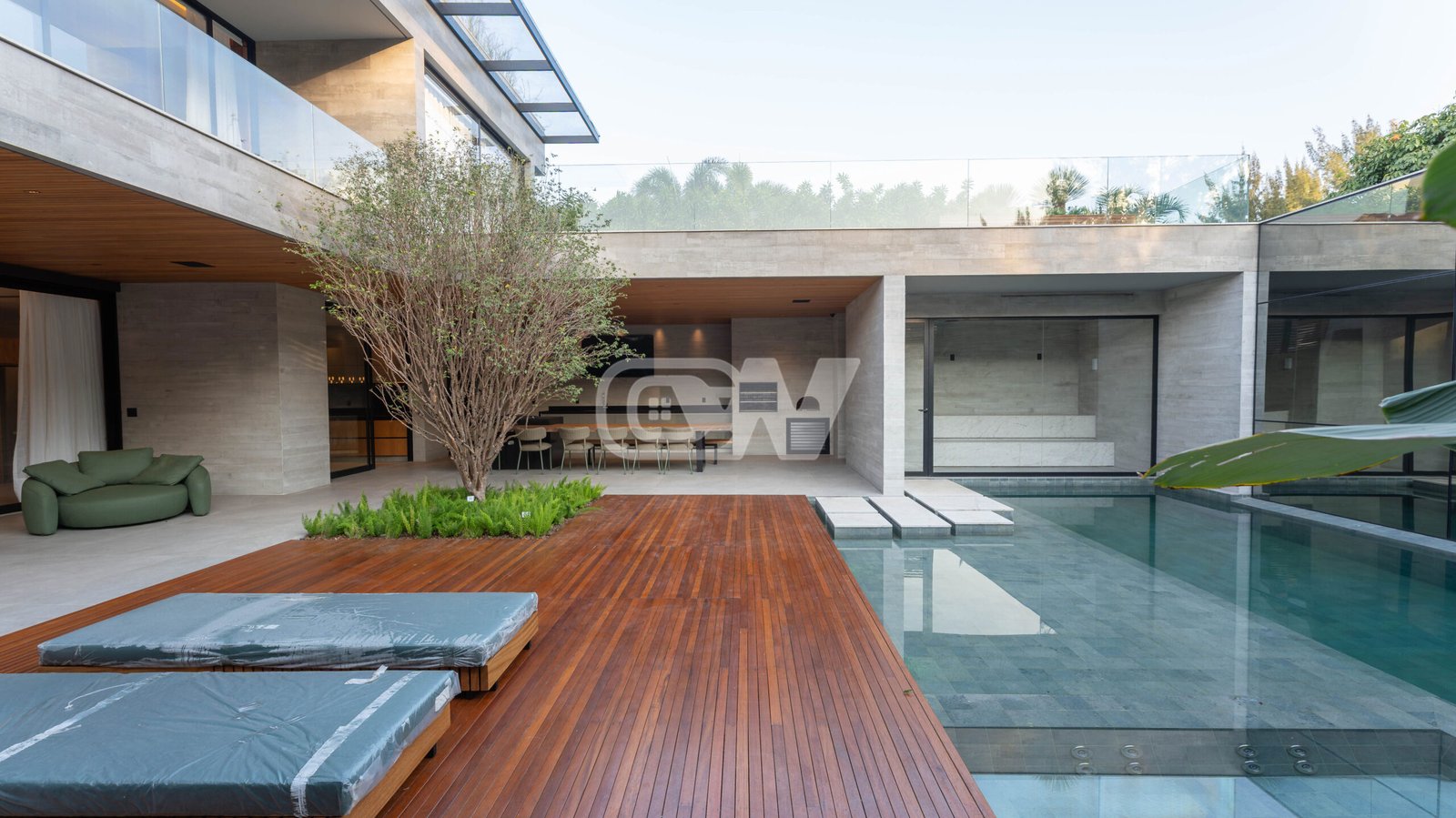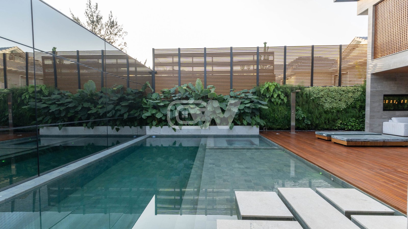 Espaço gourmet com churrasqueira, sauna com mergulho para piscina,  prainha e deck, banheiro de apoio, varanda, garagem e lindo paisagismo.