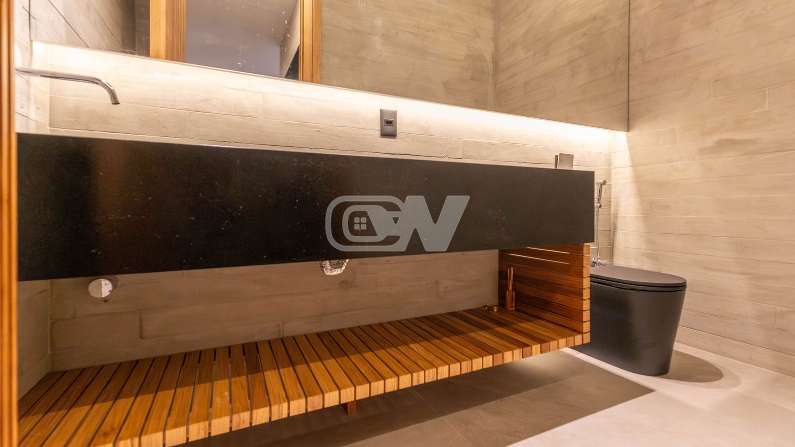 4 suítes, todas com closets, sendo a suíte máster com um excelente closet, salão de banho, bancada com cuba dupla, chuveiro duplo e uma linda banheira de hidromassagem.