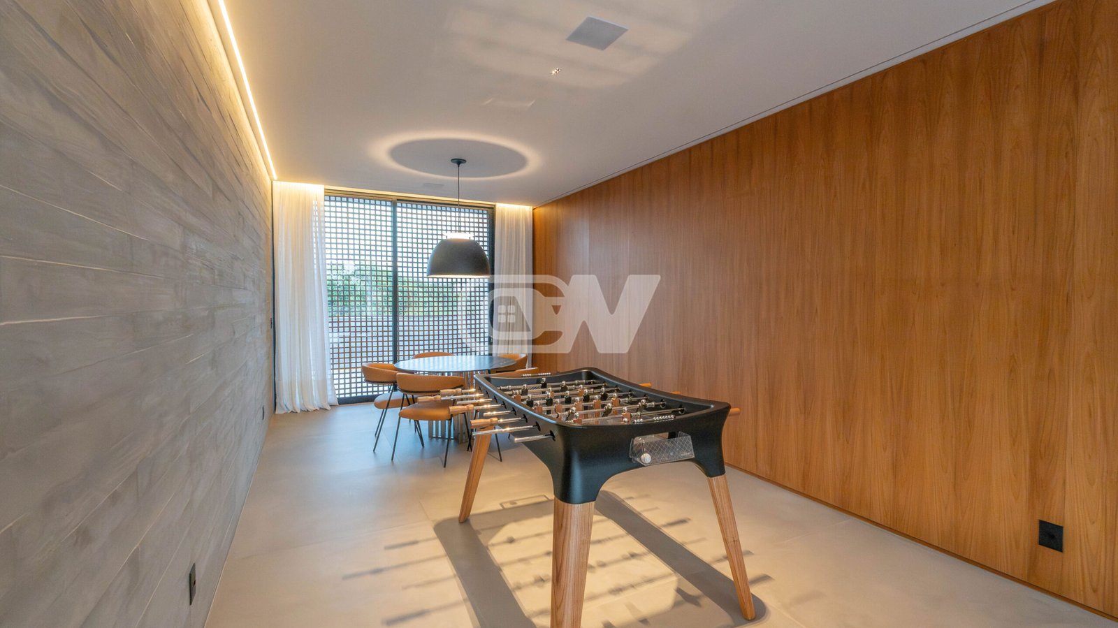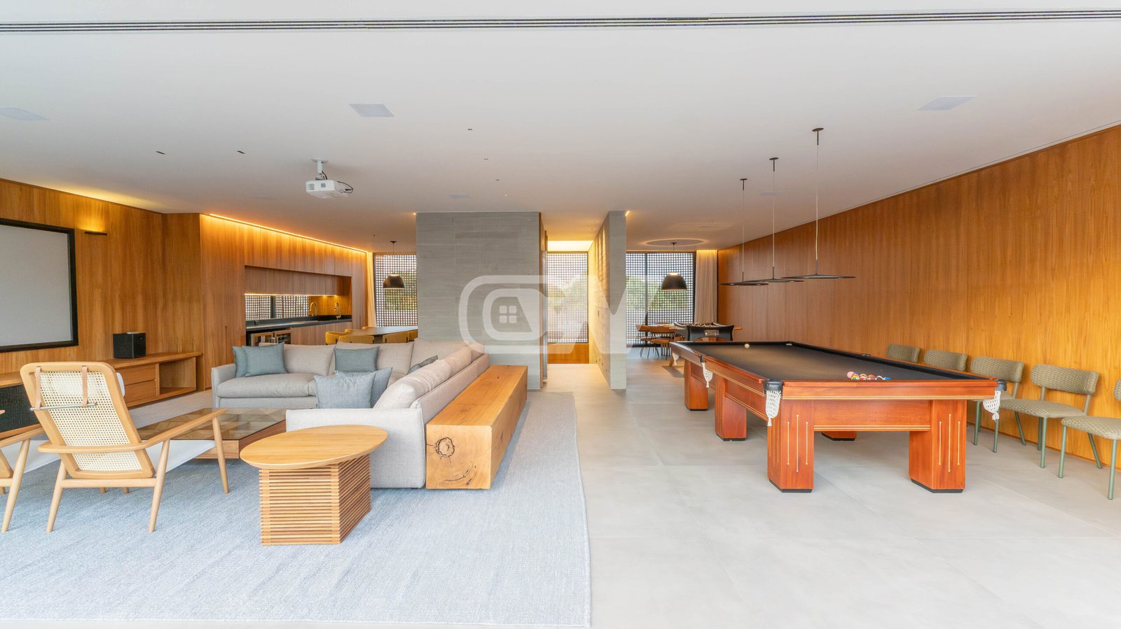Amplo espaço coberto multiuso, com cinema, sala de jogos, jacuzzi e rooftop.