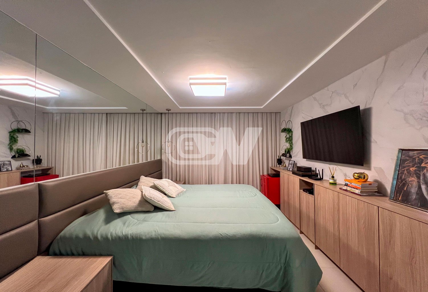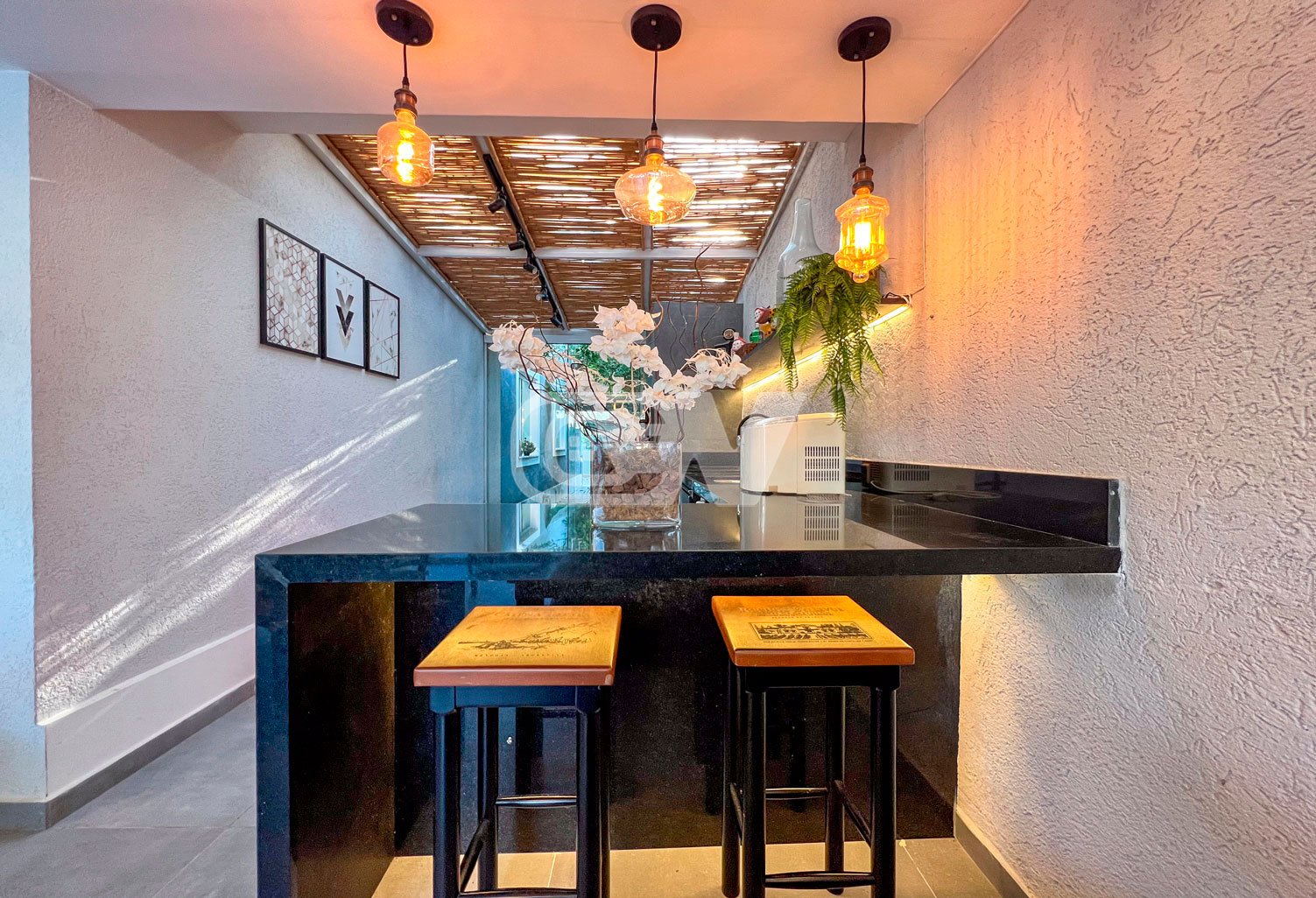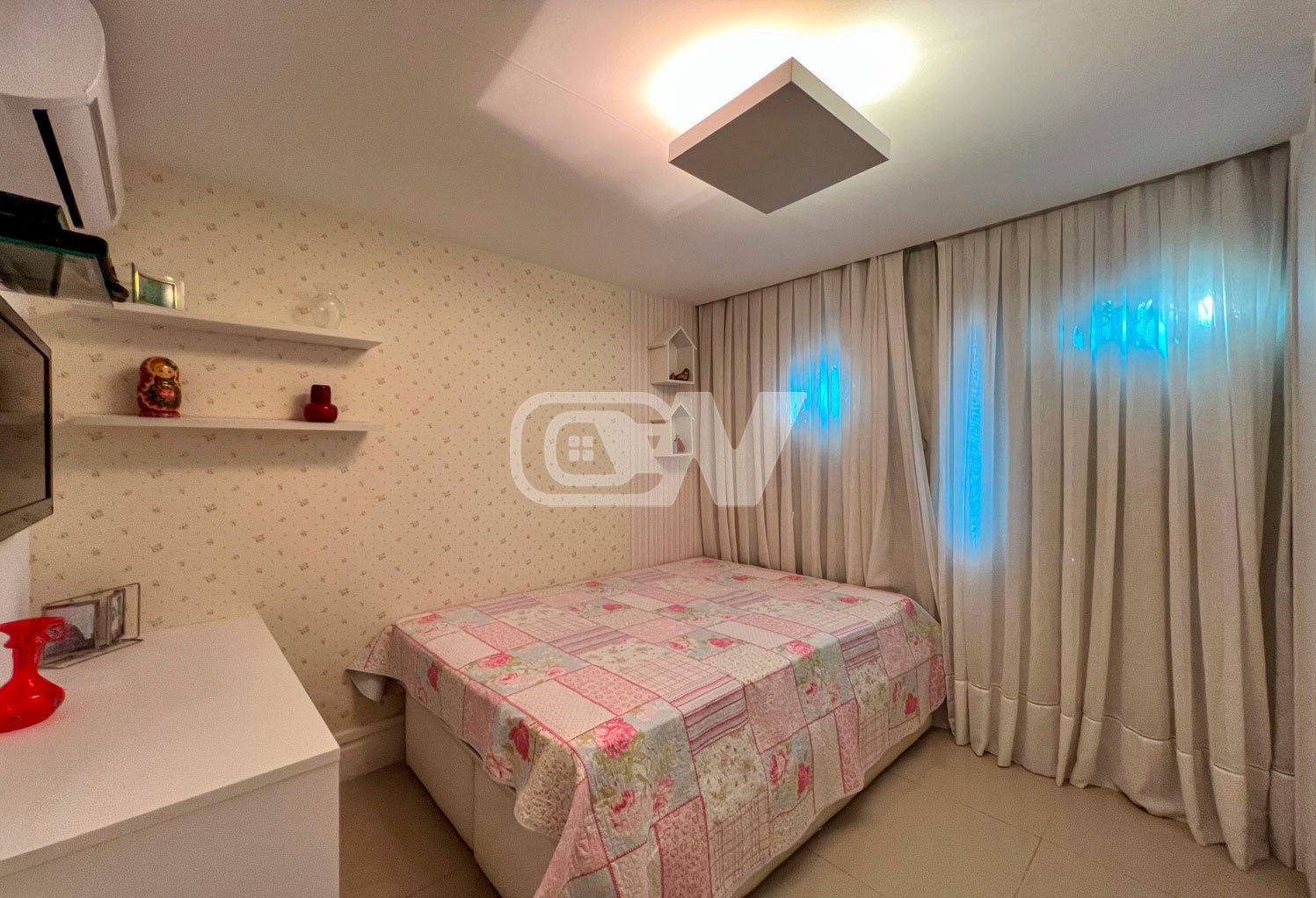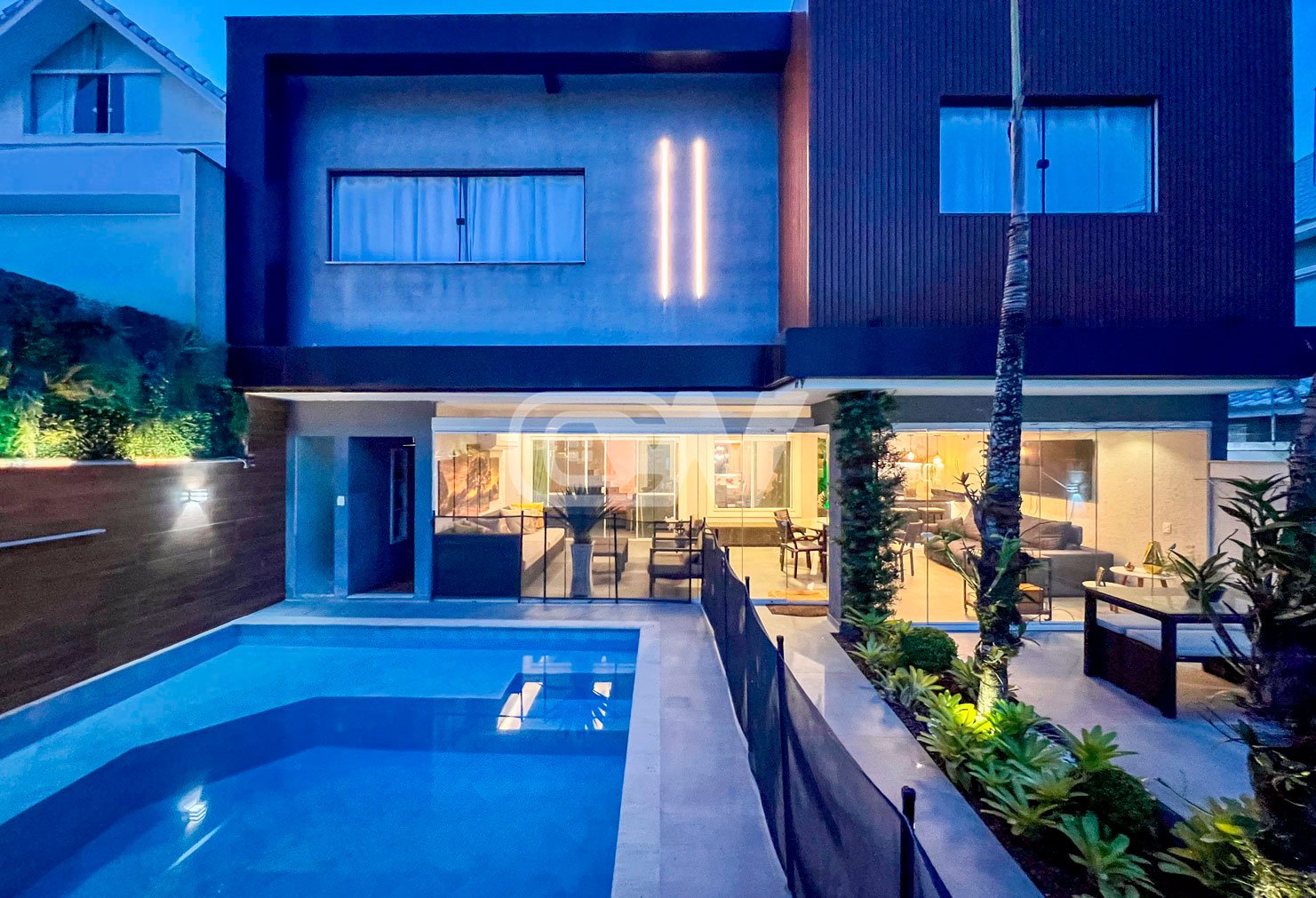 1º PAVIMENTO: Sala ampla dividida em três ambientes, com projeto de iluminação, lavabo, Copa cozinha com moveis planejada, área de serviço e dependência completa.