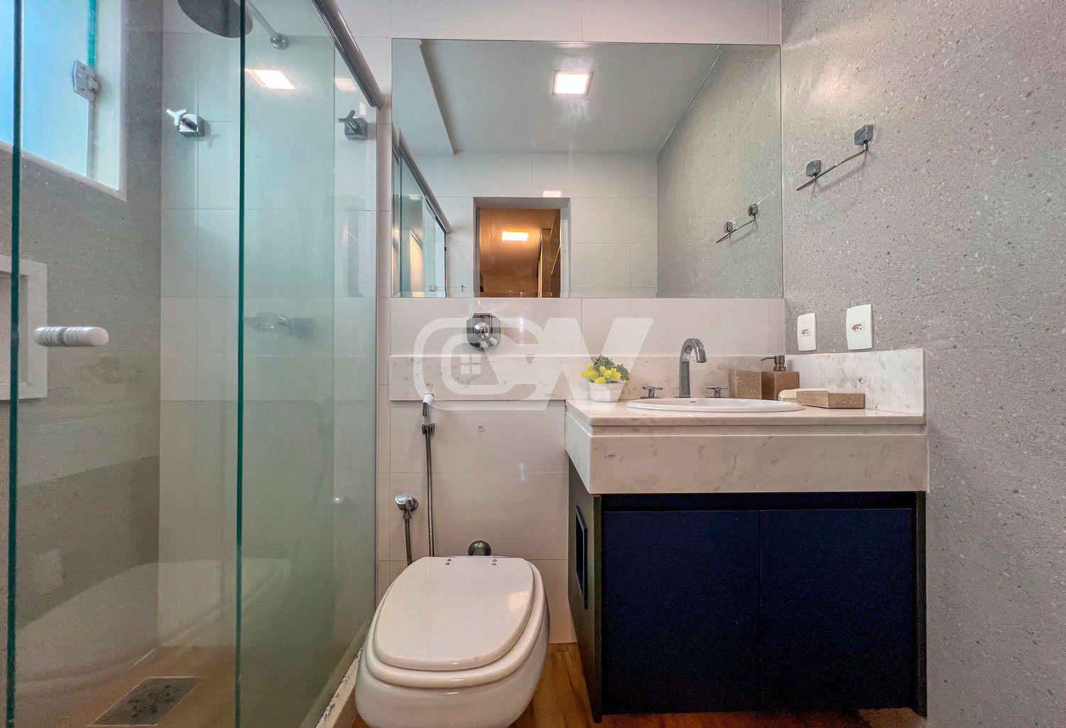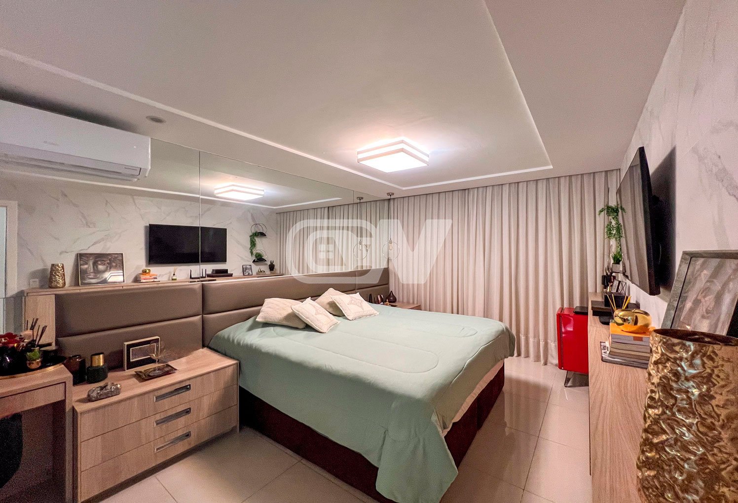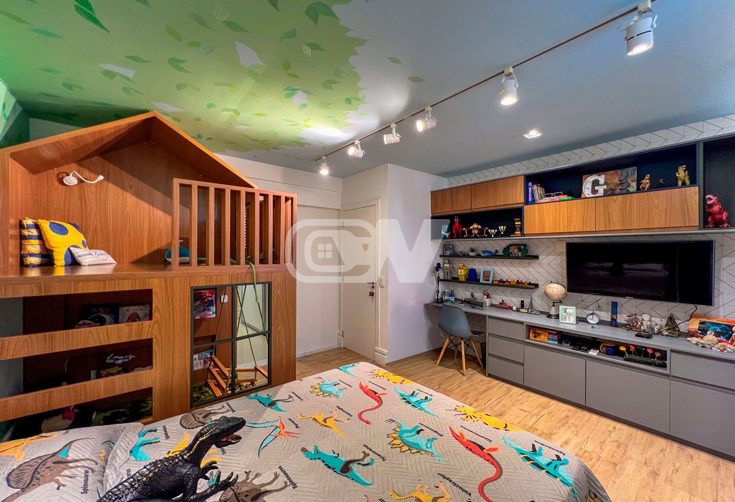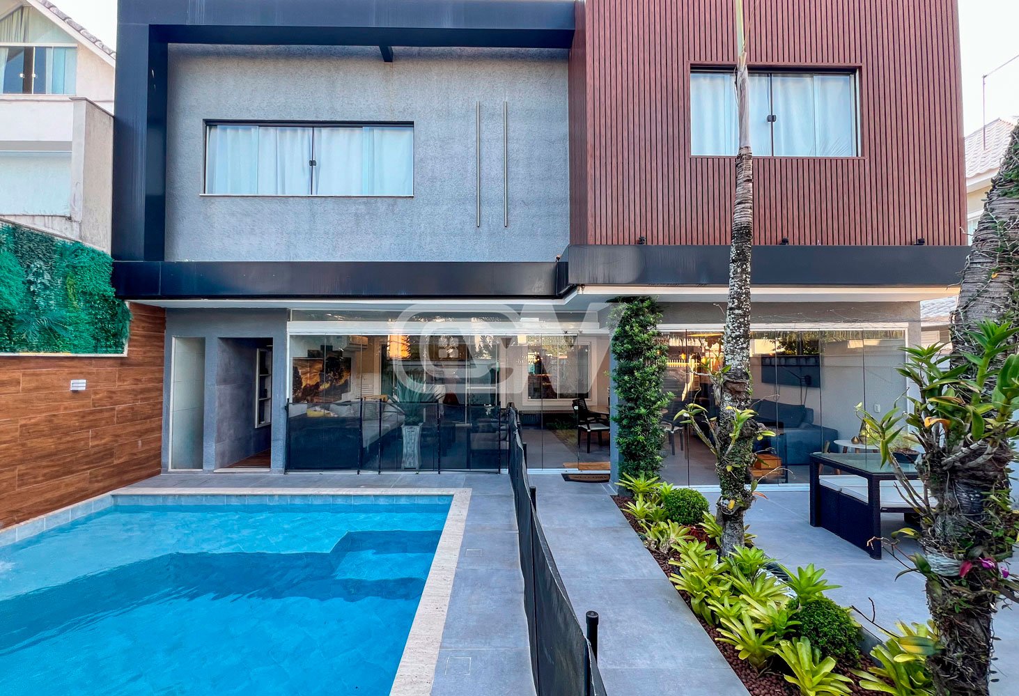 1º PAVIMENTO: Sala ampla dividida em três ambientes, com projeto de iluminação, lavabo, Copa cozinha com moveis planejada, área de serviço e dependência completa.