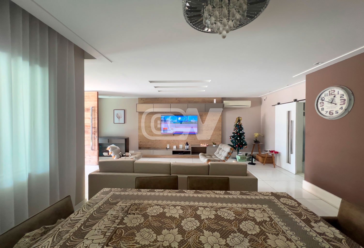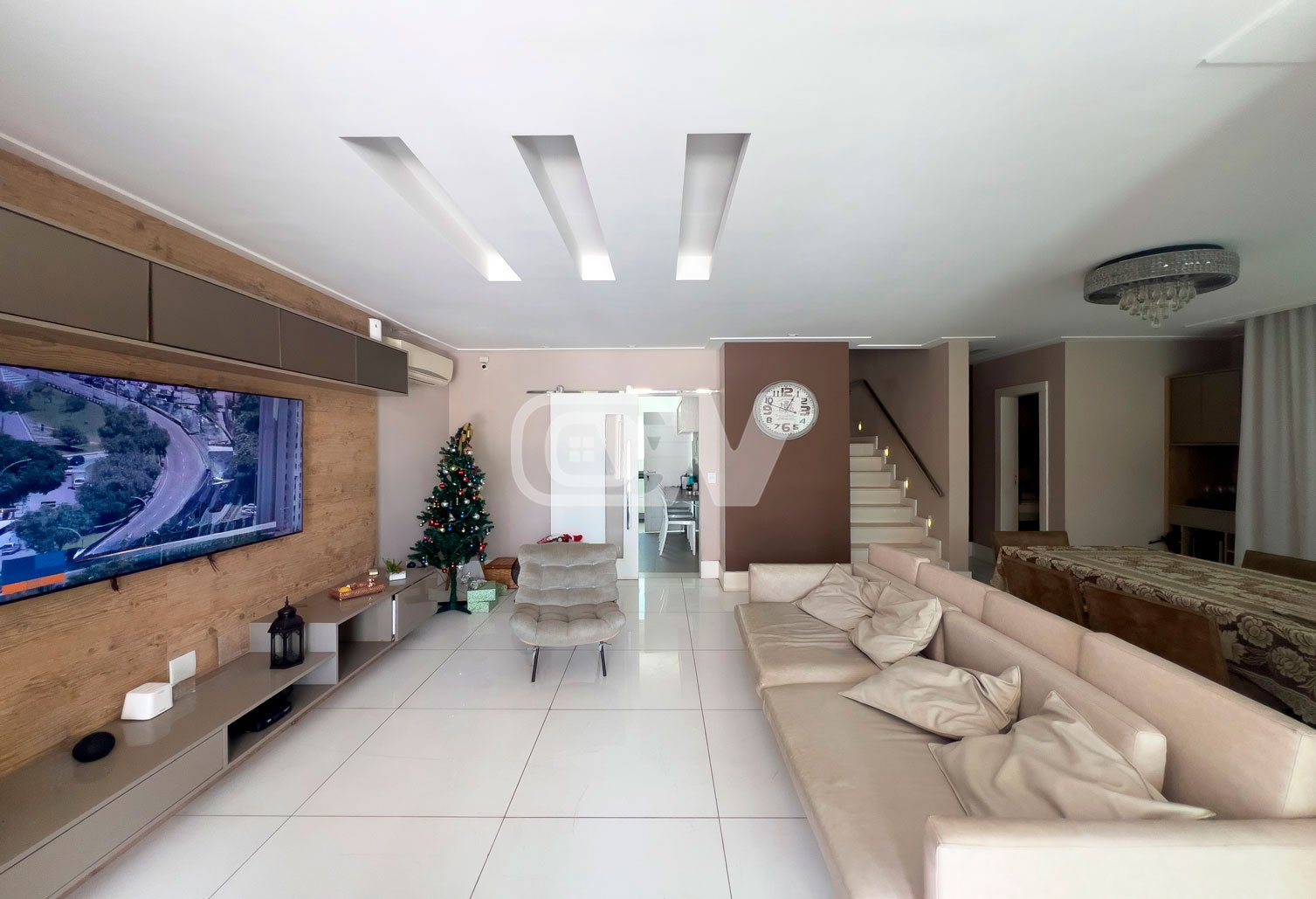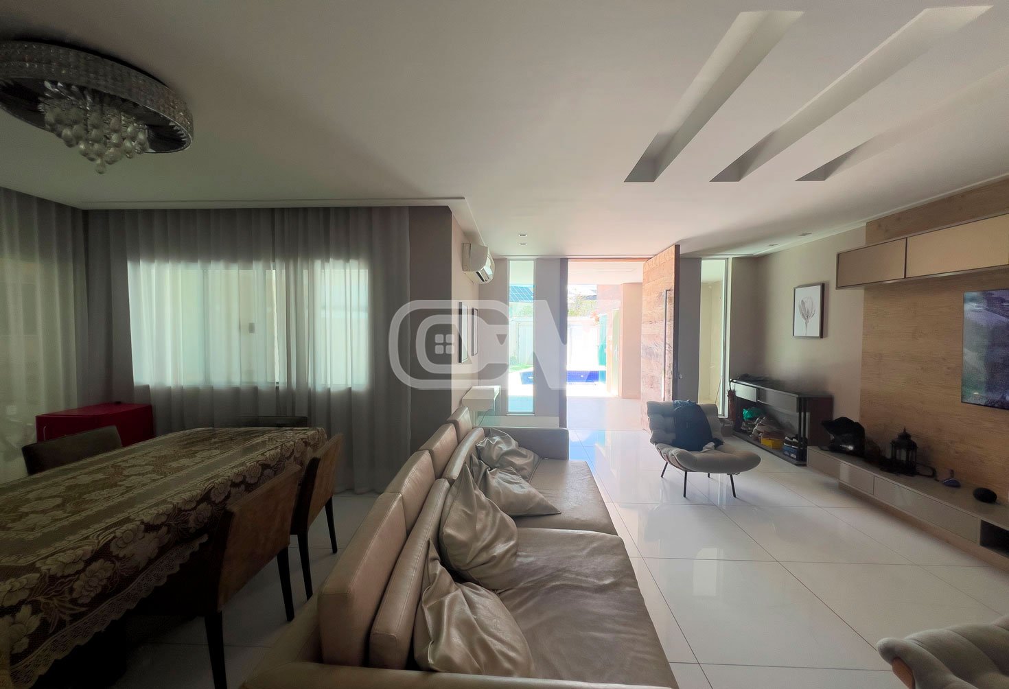 1º PAVIMENTO: Sala ampla dividida em 3 ambientes, com projeto de iluminação, lavabo, cozinha com moveis planejada, área de serviço e dependência completa.