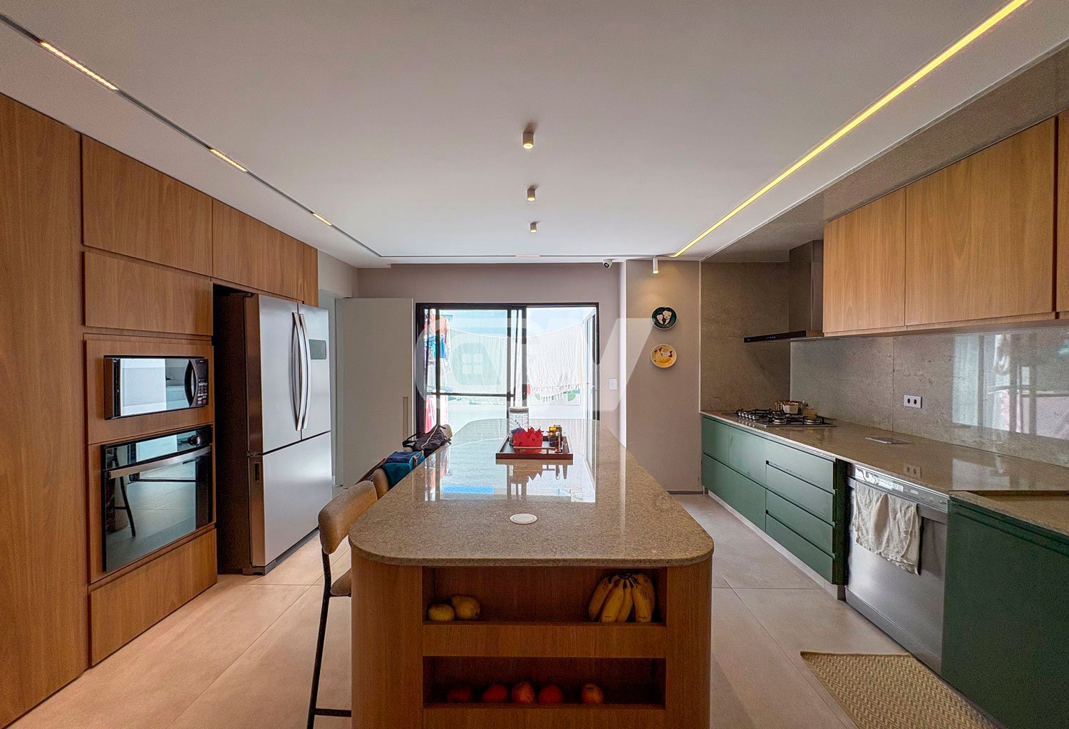 1º Pavimento: Ambientes bem distribuídos, com sala espaçosa integrada à brinquedoteca, criando um espaço acolhedor e funcional. Dispõe de lavabo, cozinha em conceito aberto, suíte no térreo, escritório e lavanderia. O quintal lateral favorece a circulação de ar e a entrada de luz natural, trazendo mais conforto ao dia a dia.