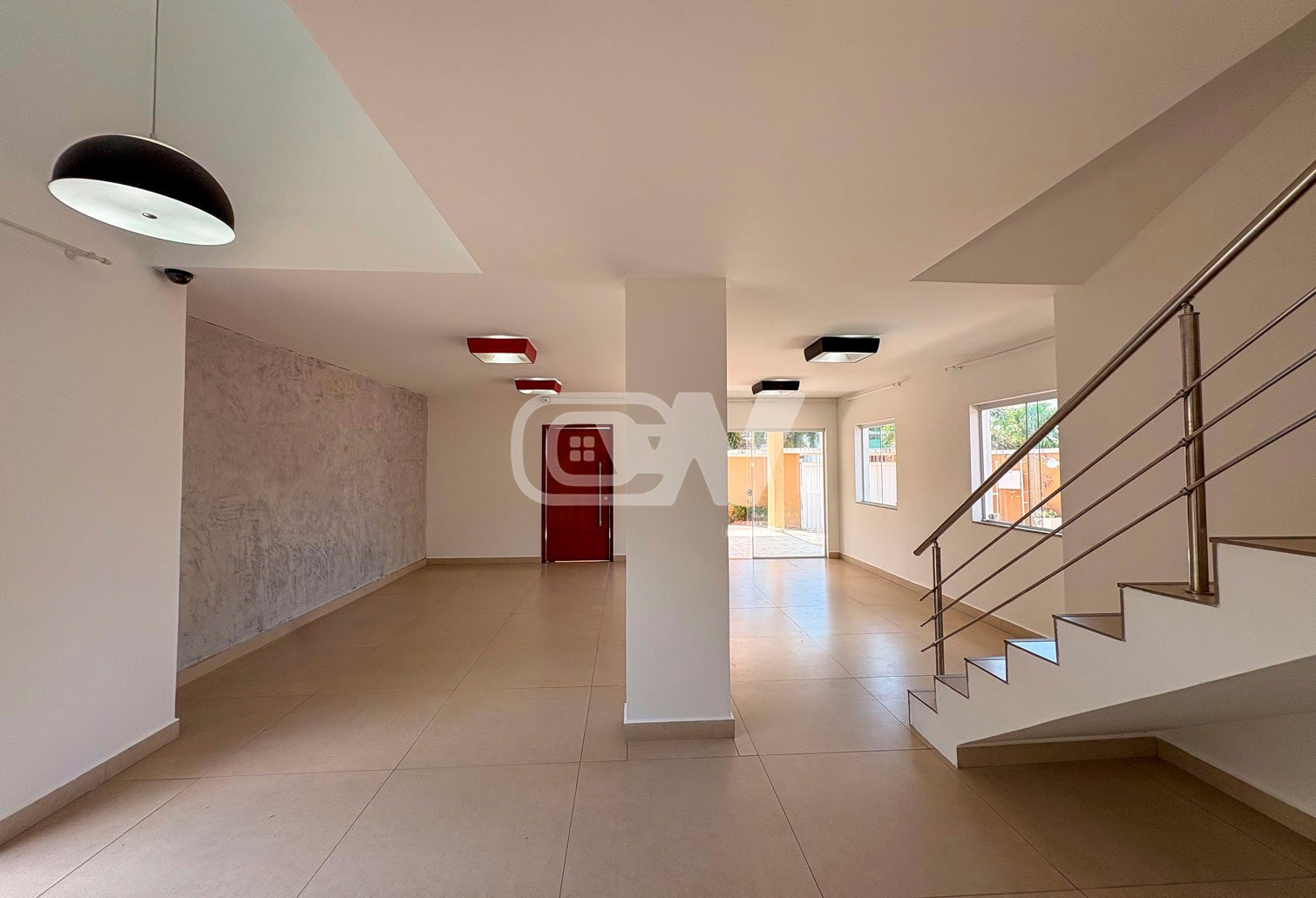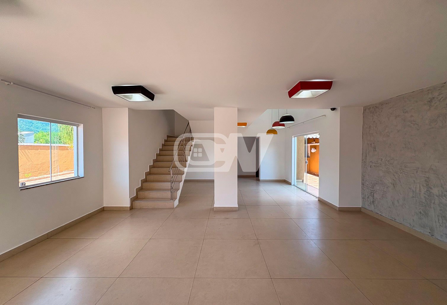 1º Pavimento: Sala extremamente espaçoso, dividido em diferentes ambientes, garantindo integração, conforto e ótima iluminação natural. O piso térreo ainda inclui um quarto com suíte, perfeito para receber hóspedes ou oferecer acessibilidade. A cozinha é prática, planejada e funcional.