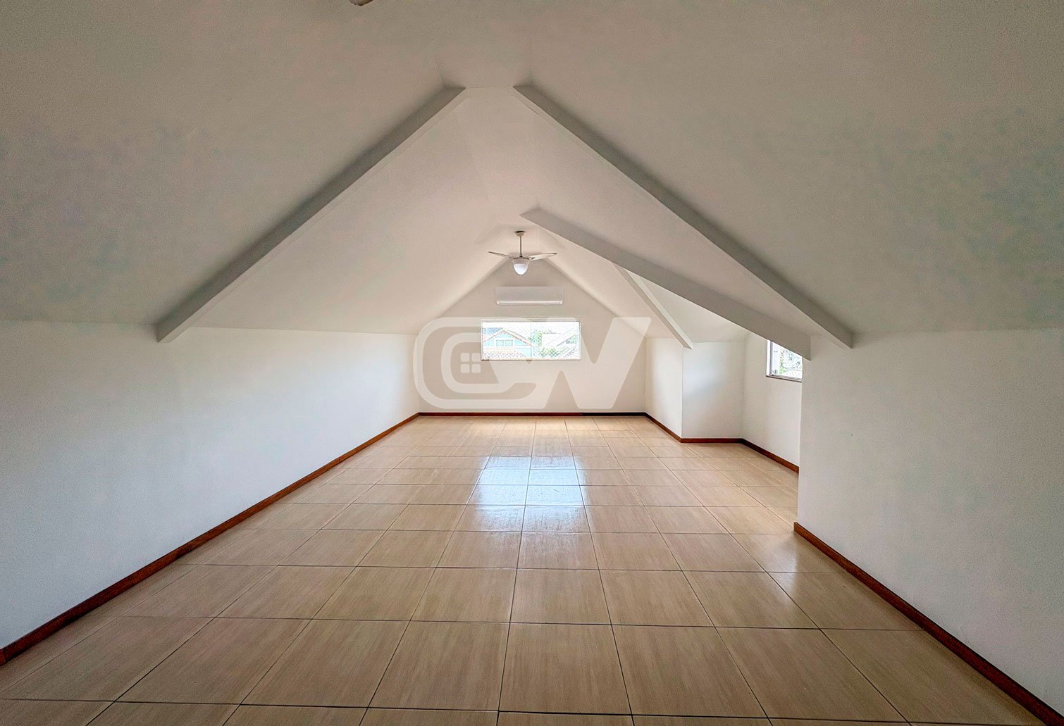3º Pavimento: O sótão apresenta generoso espaço e inclui banheiro, podendo ser facilmente transformado em sala de TV, home office, academia ou ambiente multifuncional