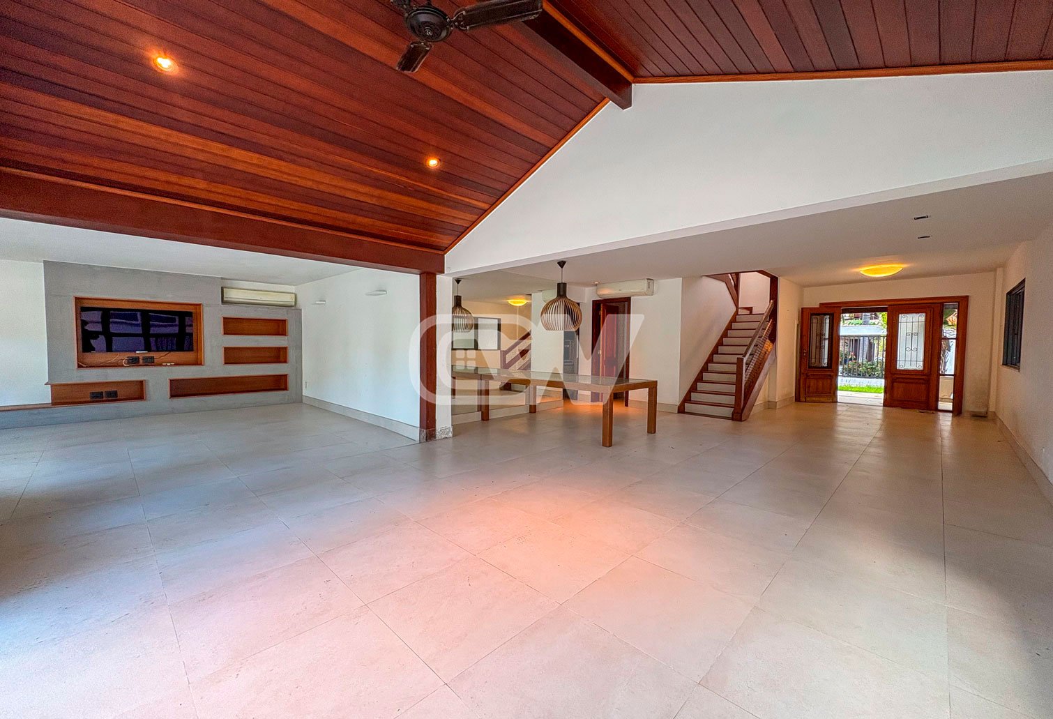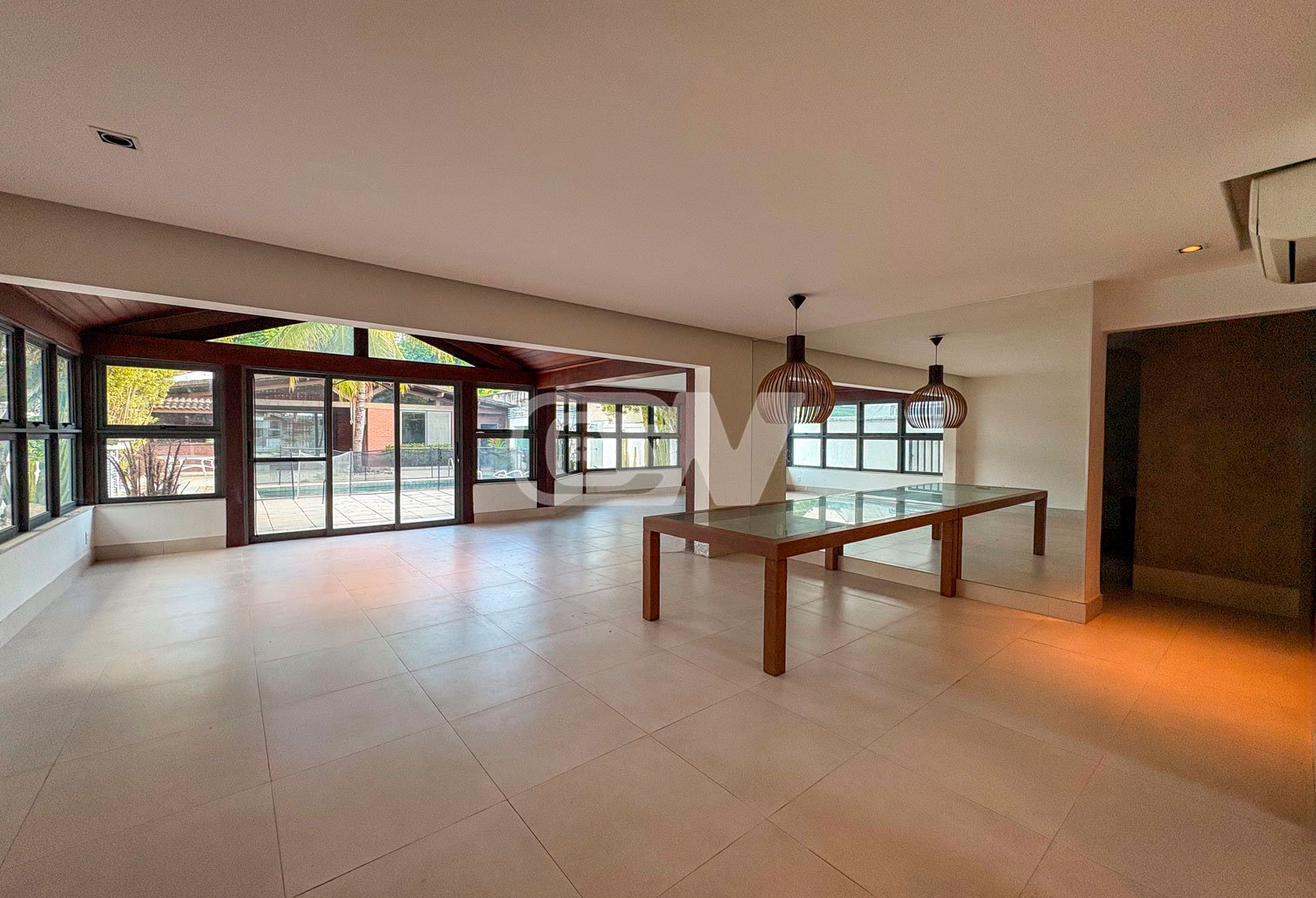 1º Pavimento: Ampla sala dividida em três ambientes, proporcionando integração e ótima circulação entre os espaços. O pavimento também conta com cozinha funcional e acesso direto à área externa de lazer.