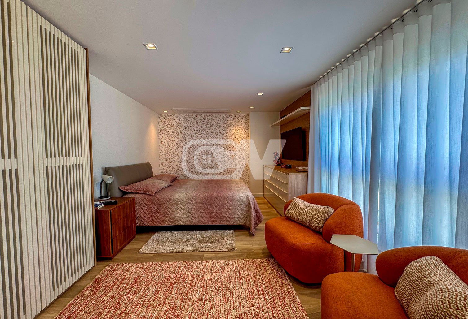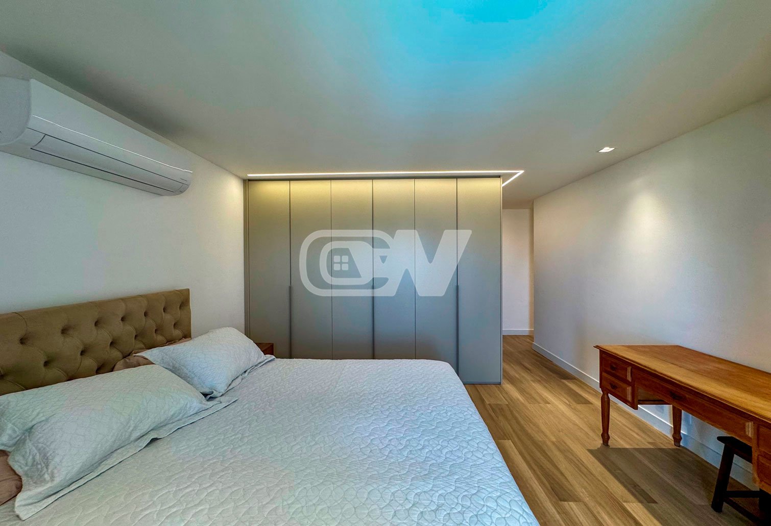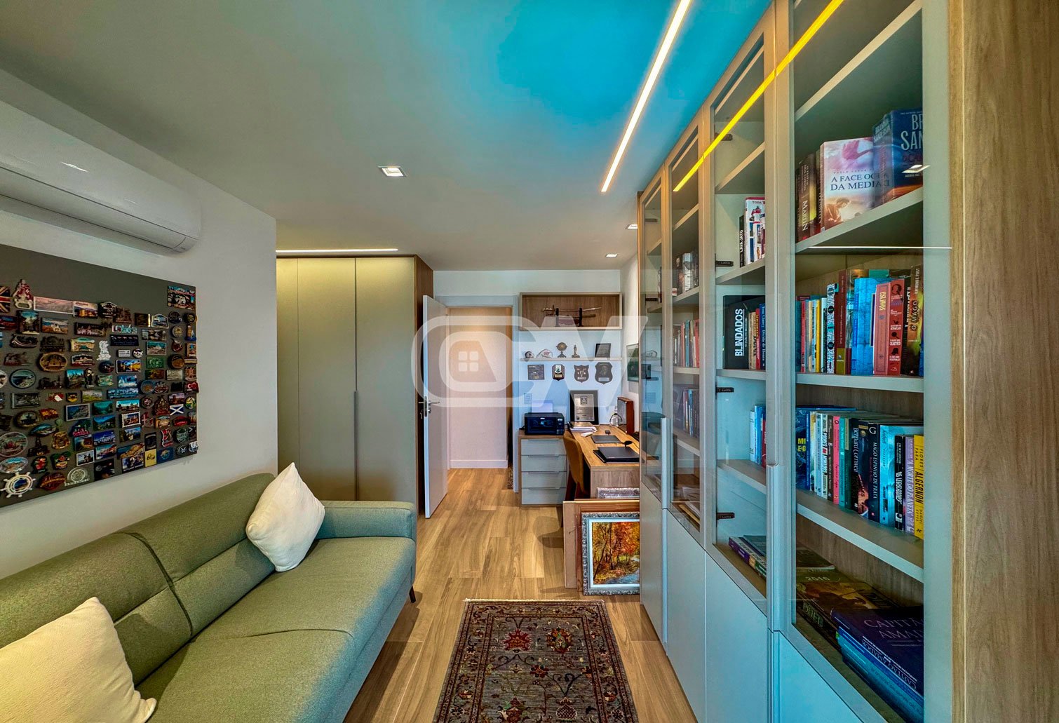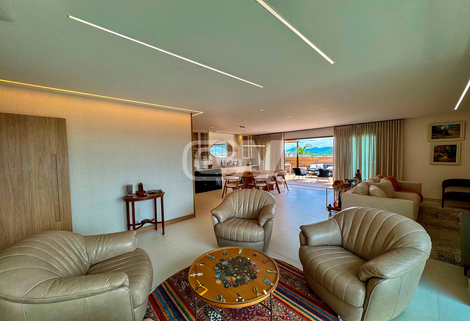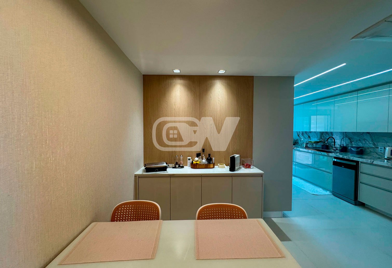 Sala em quatro ambientes em porcelanato, projeto de iluminação em led podendo ser integrada a varanda fechada com cortina de vidro, com vista para o mar, banheiro social, quatro (4) suítes com armários Lacca, sendo a Master com closet. Cozinha com armários planejados Lacca, área de serviço e dependência completa.