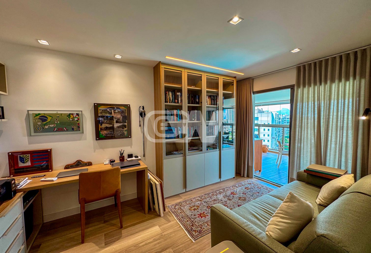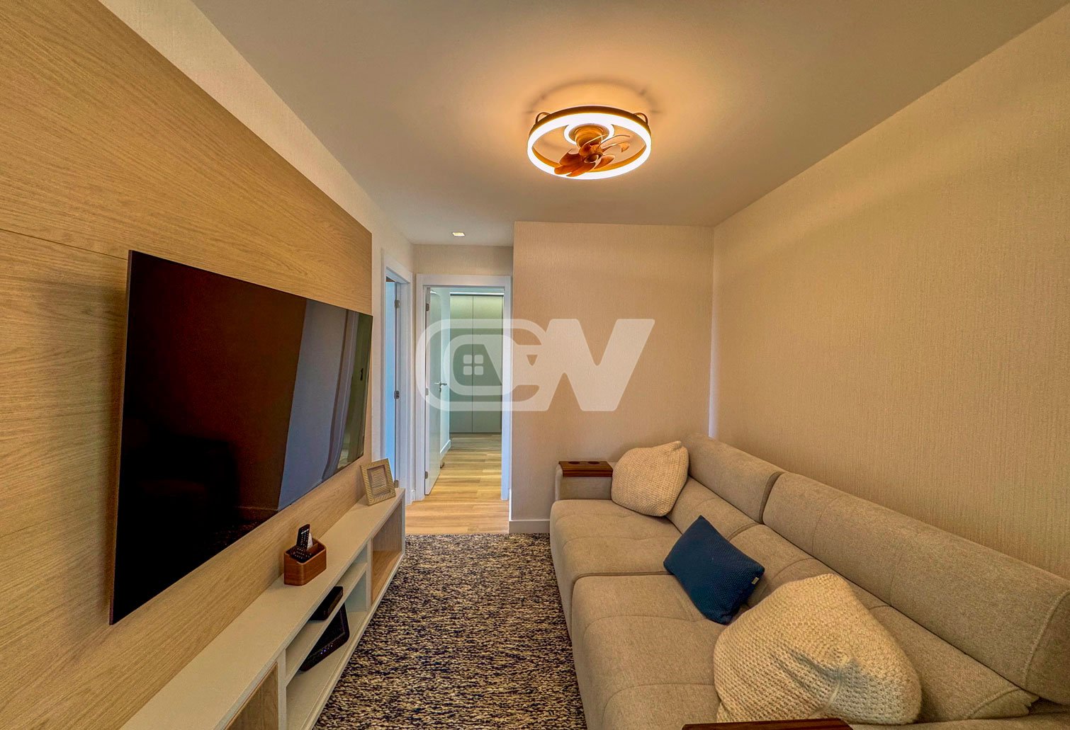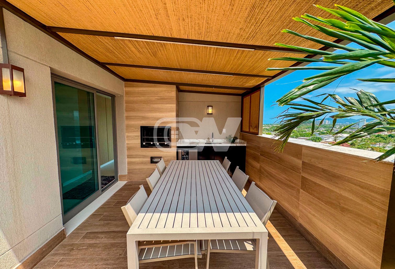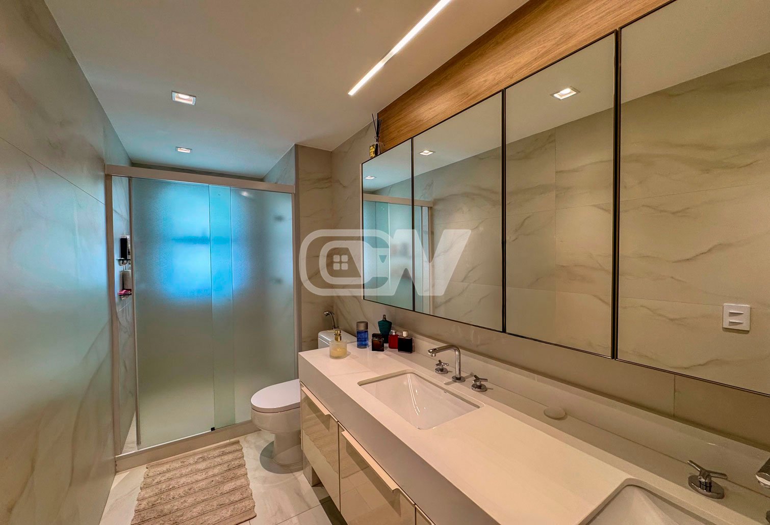 Sala em quatro ambientes em porcelanato, projeto de iluminação em led podendo ser integrada a varanda fechada com cortina de vidro, com vista para o mar, banheiro social, quatro (4) suítes com armários Lacca, sendo a Master com closet. Cozinha com armários planejados Lacca, área de serviço e dependência completa.