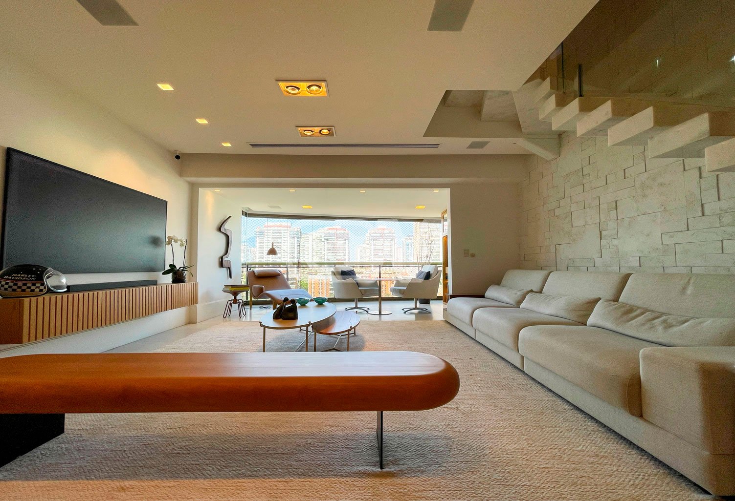 1° Pavimento: Ampla sala em três ambientes, integrada a varanda fechada em cortina de vidro, sol da manhã, vista lateral mar, totalmente reformada, projeto de iluminação e som, acabamento alto padrão, sistema de monitoramento por circuito fechado, ar condicionado dutado, marcenaria na varanda com bar e adega, banheiro social completo com cuba esculpida. Nesse pavimento são dois quartos sendo 1 suíte todos com armários planejados. Cozinha repleta de armários, área de serviço e dependência completa.