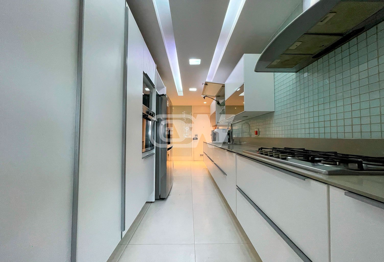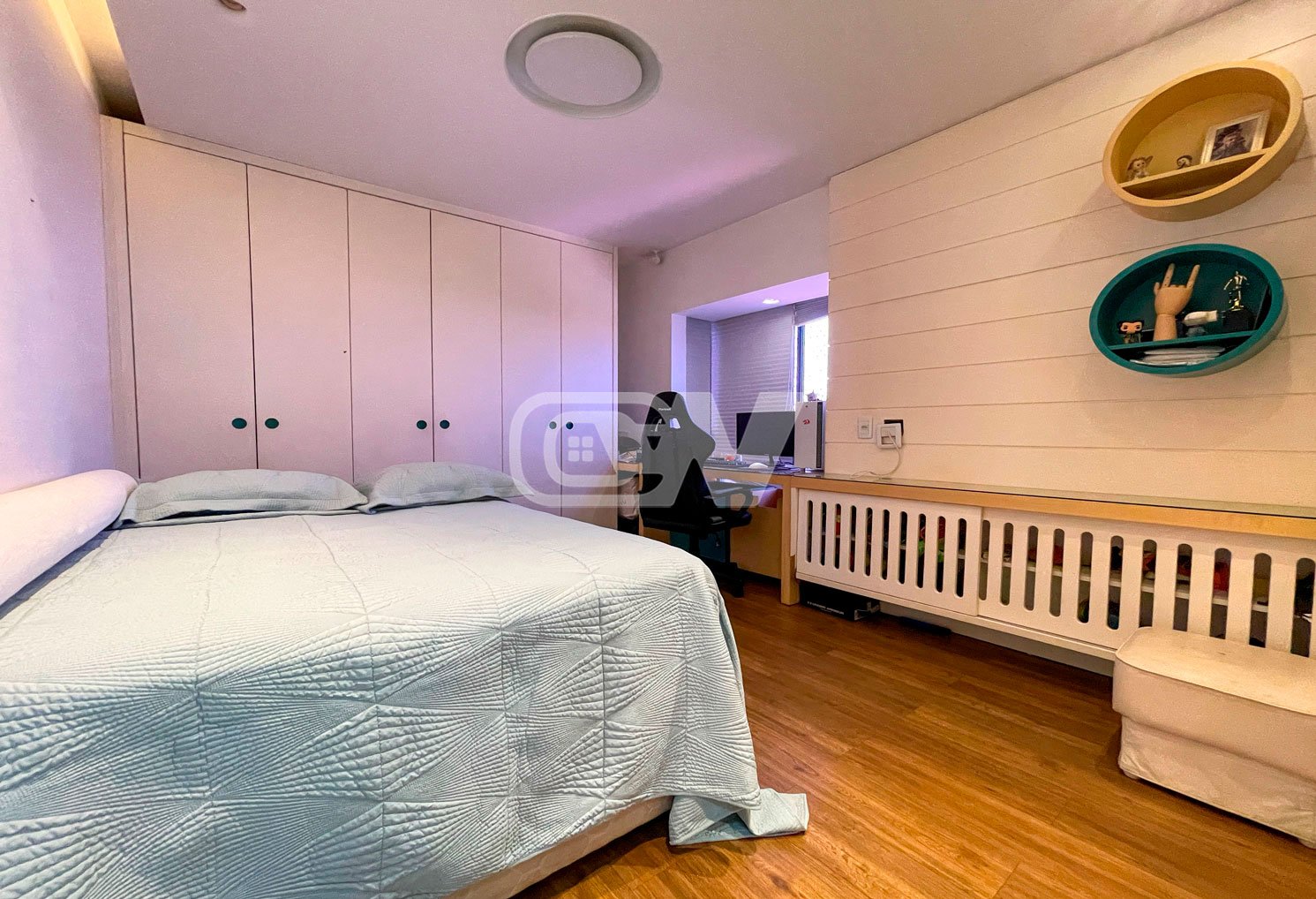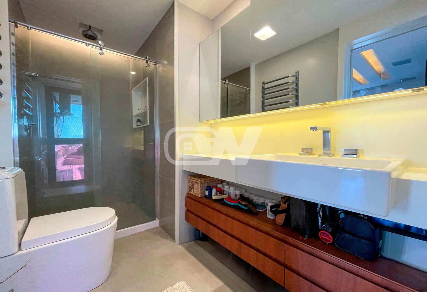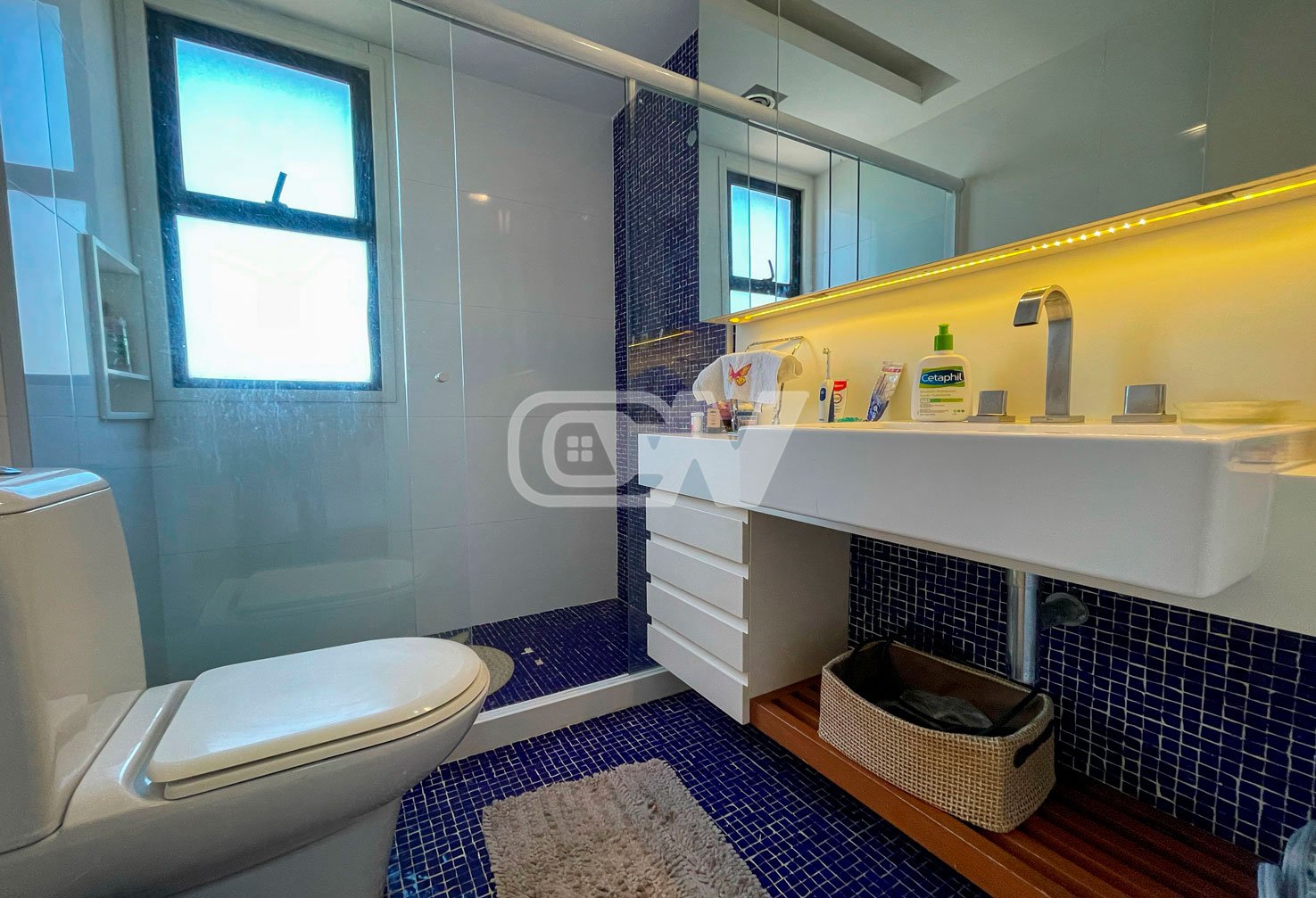 1° Pavimento: Ampla sala em três ambientes, integrada a varanda fechada em cortina de vidro, sol da manhã, vista lateral mar, totalmente reformada, projeto de iluminação e som, acabamento alto padrão, sistema de monitoramento por circuito fechado, ar condicionado dutado, marcenaria na varanda com bar e adega, banheiro social completo com cuba esculpida. Nesse pavimento são dois quartos sendo 1 suíte todos com armários planejados. Cozinha repleta de armários, área de serviço e dependência completa.