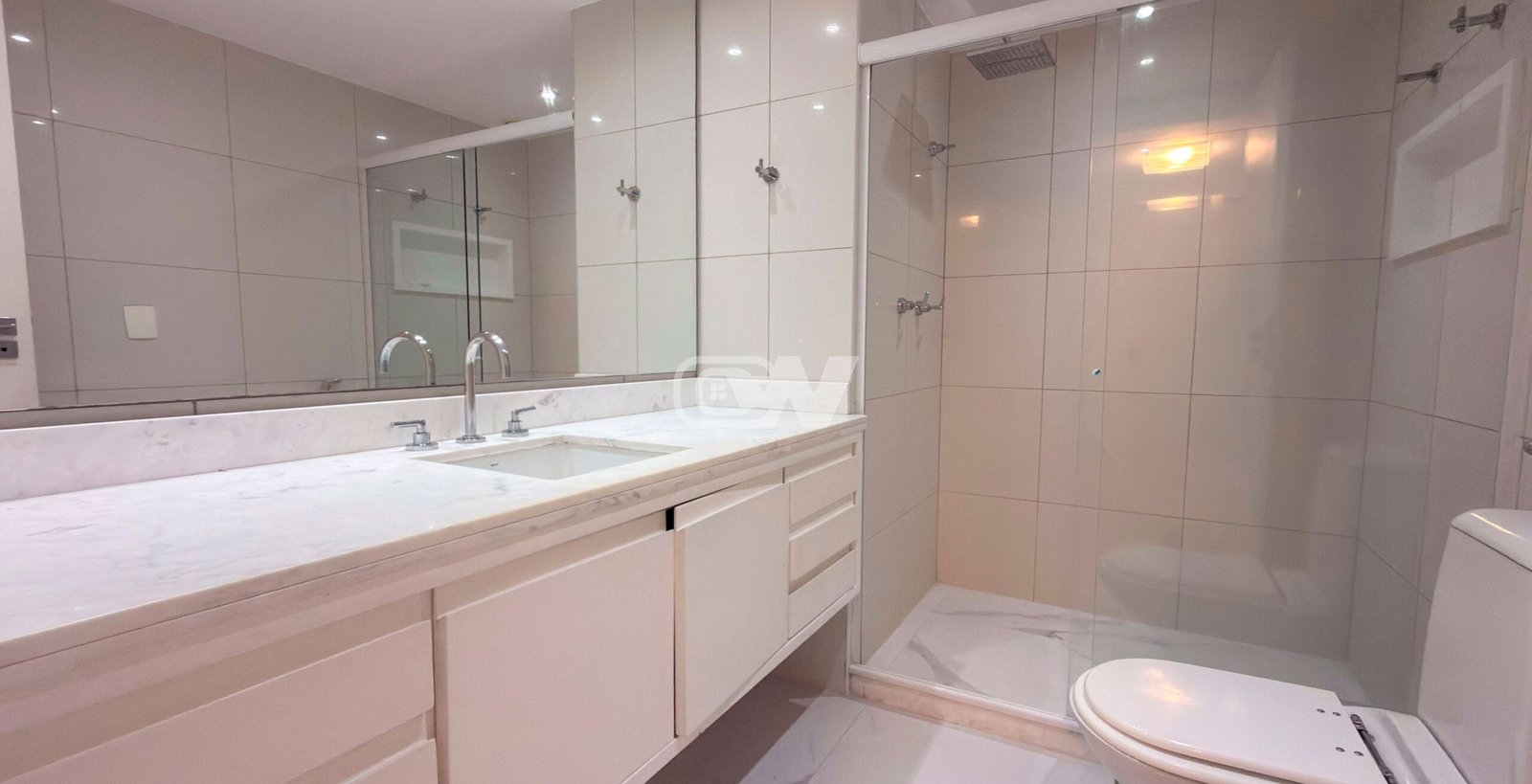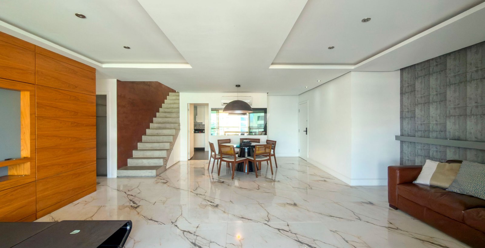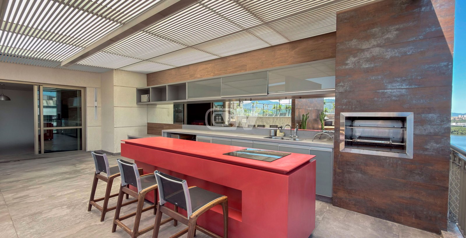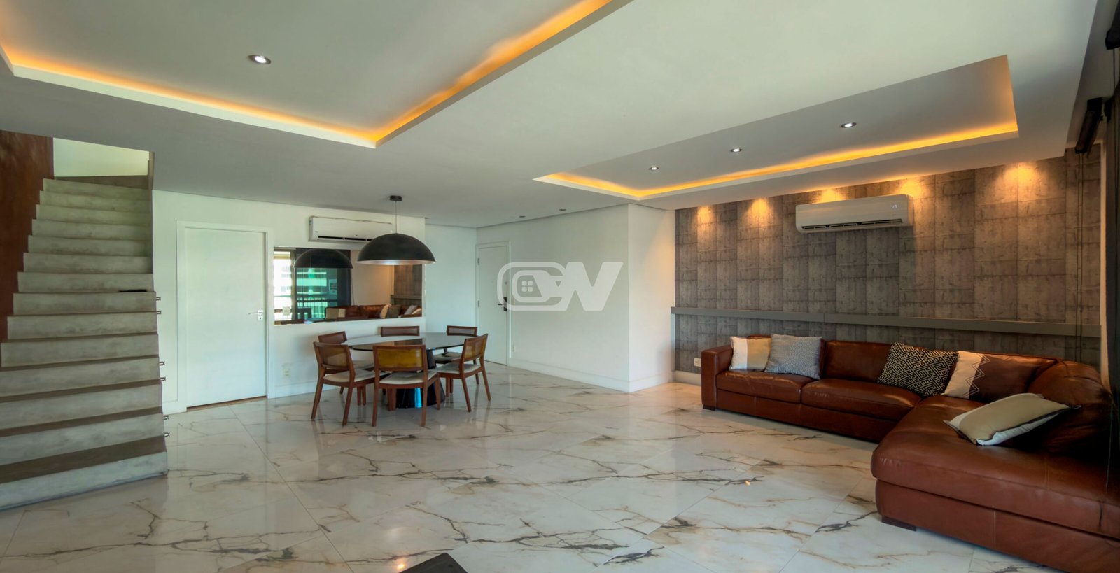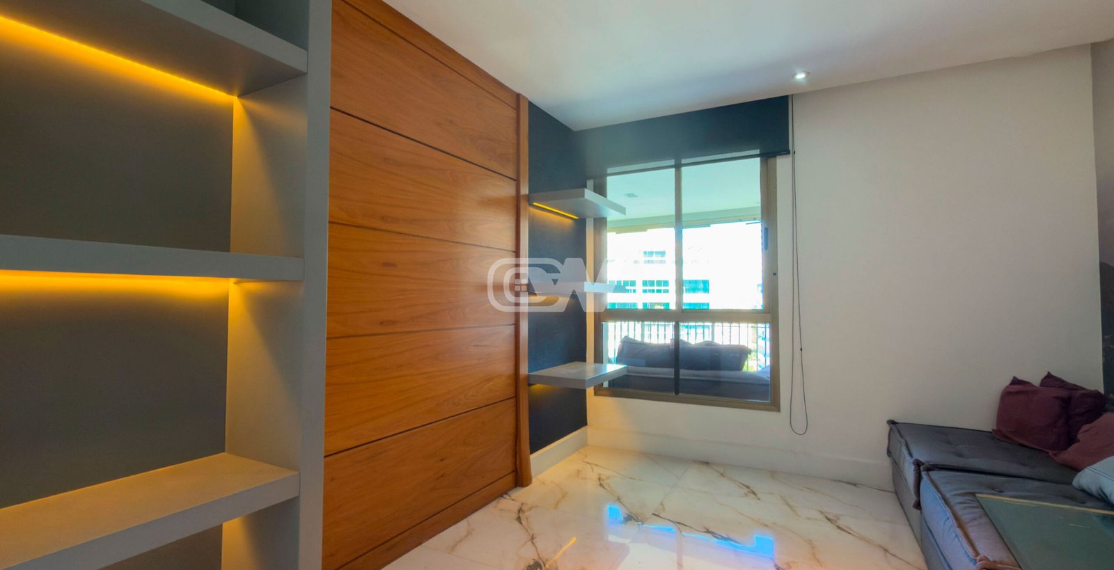 1° Pavimento: Ampla sala em vários ambientes, sistema de som integrado, riquíssimo em marcenaria com piso em porcelanato, projeto de iluminação, ar condicionado e integrada a varanda e lavabo finamente decorado. Uma espaçosa copa cozinha planejada completa, com bancada com cubas duplas, fogão cooktop com coifa em inox, lavanderia e dependência completa. Duas suítes luxuosas, todas com ar condicionado, iluminação em LED e móveis planejados.