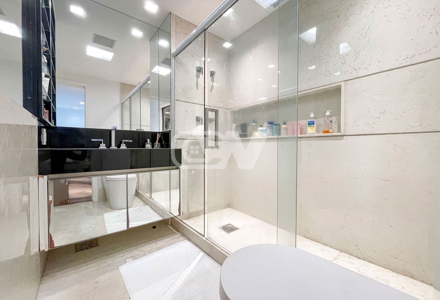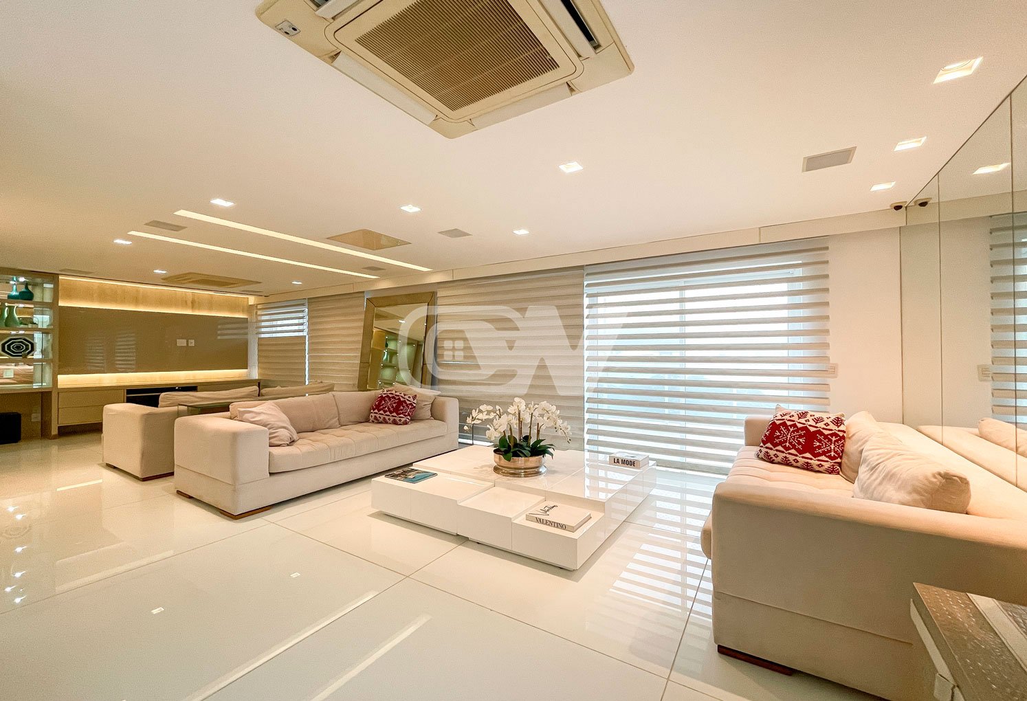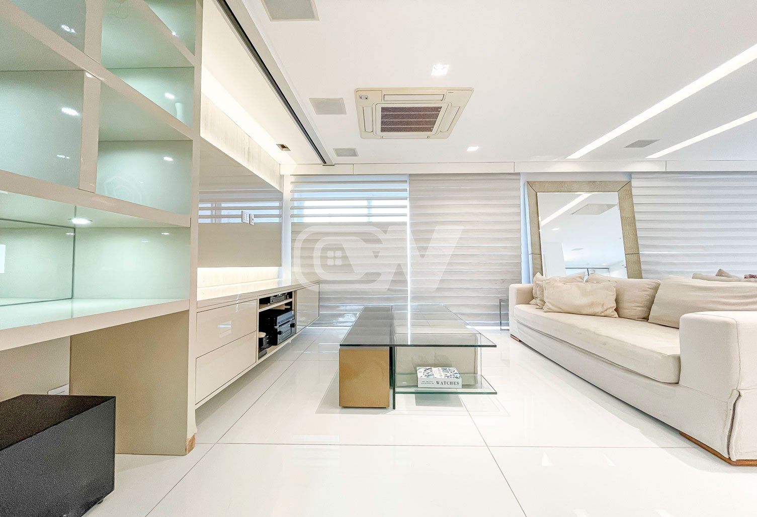 Salão em vários ambientes, com projeto de iluminação direta e indireta, som, com automação feita por empresa renomada (HIGH END), climatizada com ar condicionado modelo K7, persianas com automação, integrada a varanda com vista para a lagoa, acabamento alto padrão, sistema de monitoramento por circuito fechado, lavabo com bancada esculpida, sala intima de tv e escritório, três suítes, sendo a master com amplo closet, dois banheiros, sendo um com salão de banho com bancada dupla, e hidromassagem.