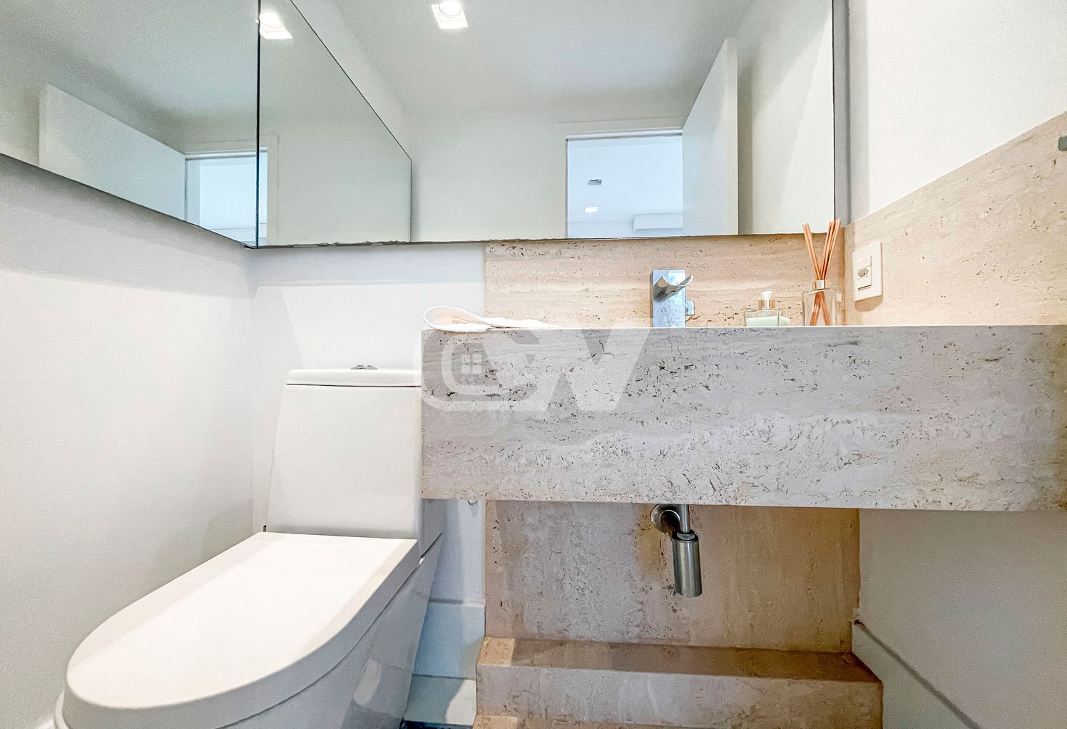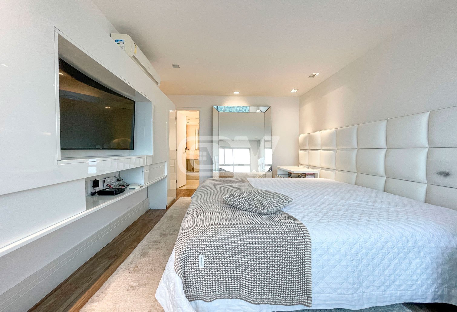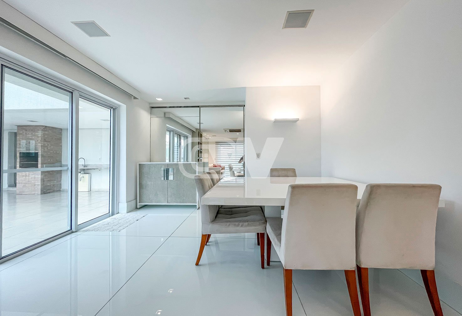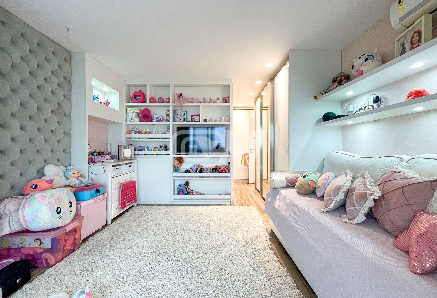 Salão em vários ambientes, com projeto de iluminação direta e indireta, som, com automação feita por empresa renomada (HIGH END), climatizada com ar condicionado modelo K7, persianas com automação, integrada a varanda com vista para a lagoa, acabamento alto padrão, sistema de monitoramento por circuito fechado, lavabo com bancada esculpida, sala intima de tv e escritório, três suítes, sendo a master com amplo closet, dois banheiros, sendo um com salão de banho com bancada dupla, e hidromassagem.