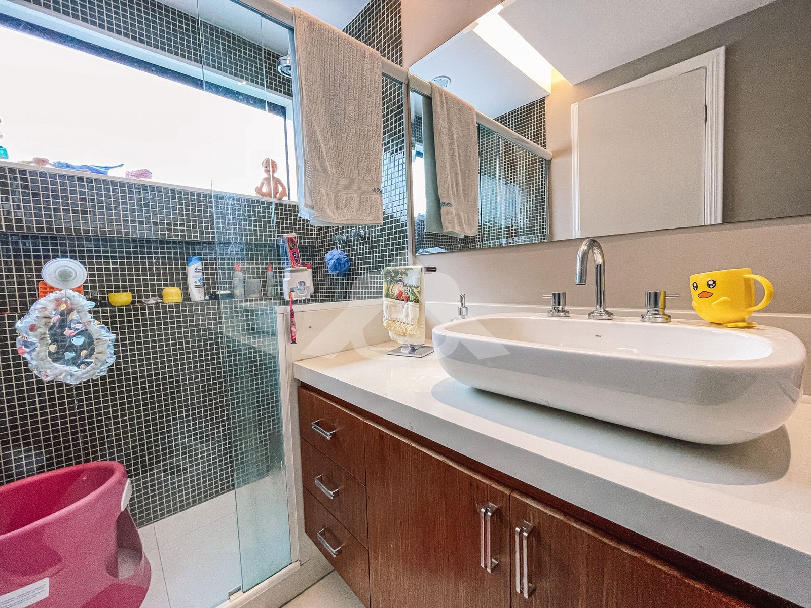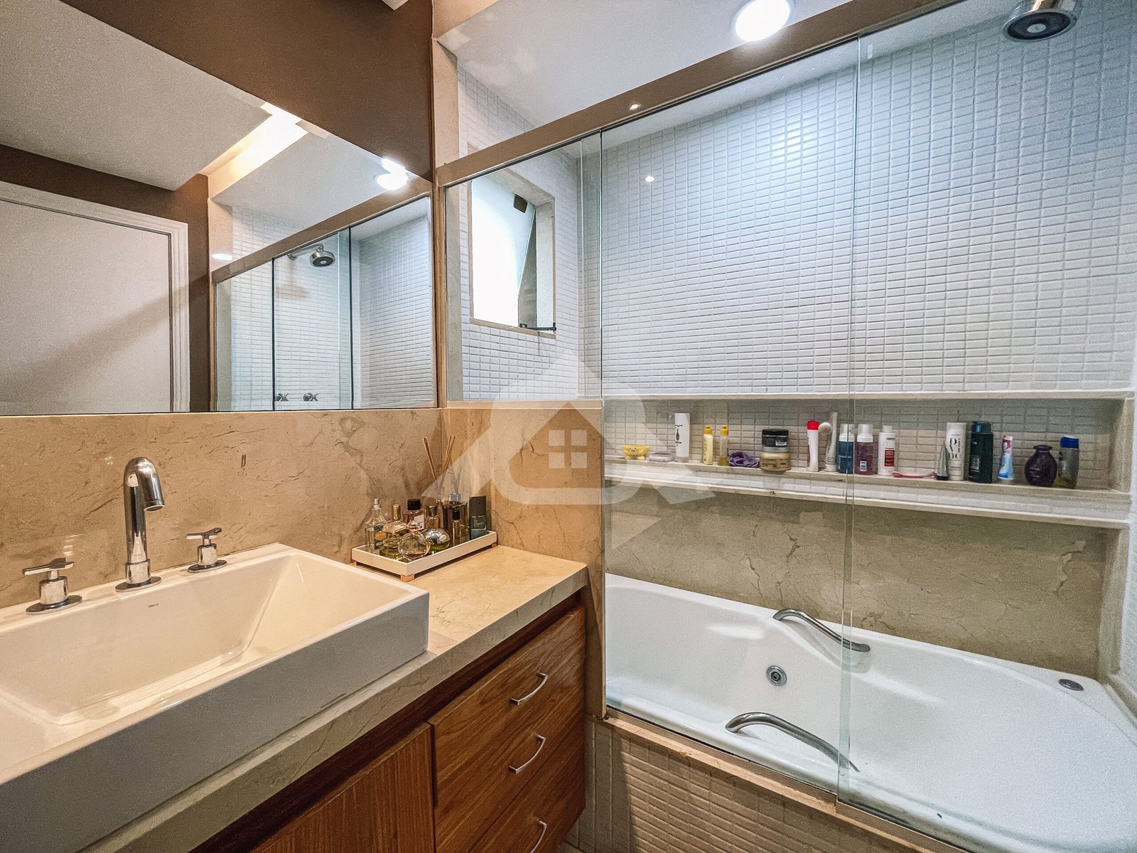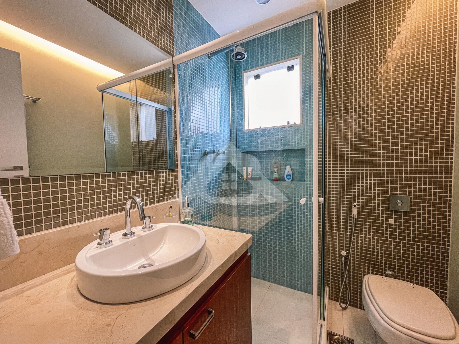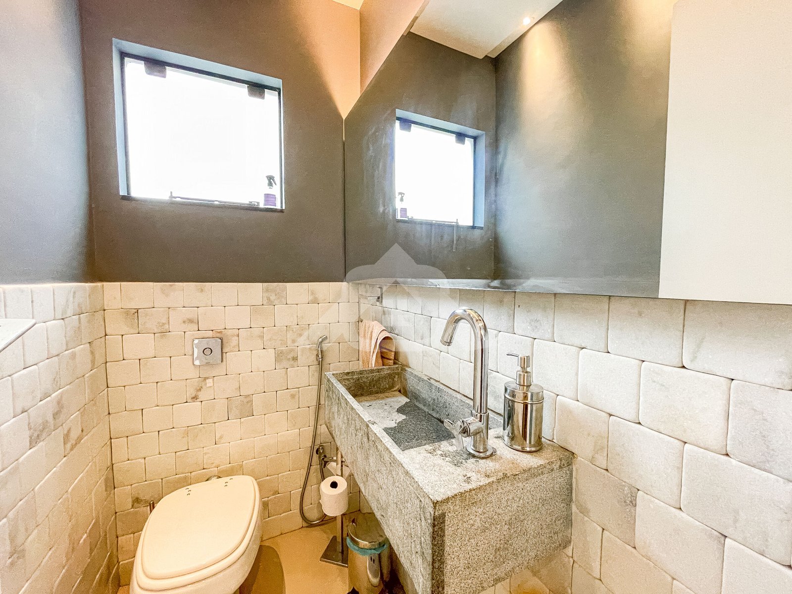 1° Pavimento: Salão em vários ambientes com piso porcelanato, projeto de iluminação, lavabo decorado, copa cozinha com armários planejados, despensa e área de serviço.