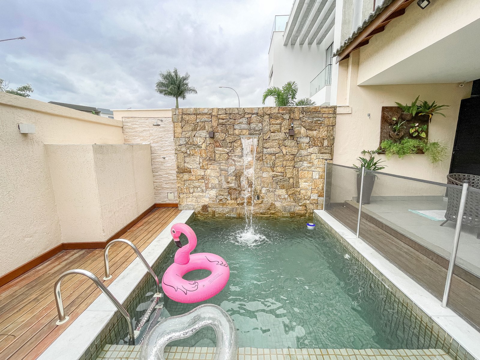 Área de Lazer composta de: Piscina aquecida, varanda gourmet, paisagismo e garagem.