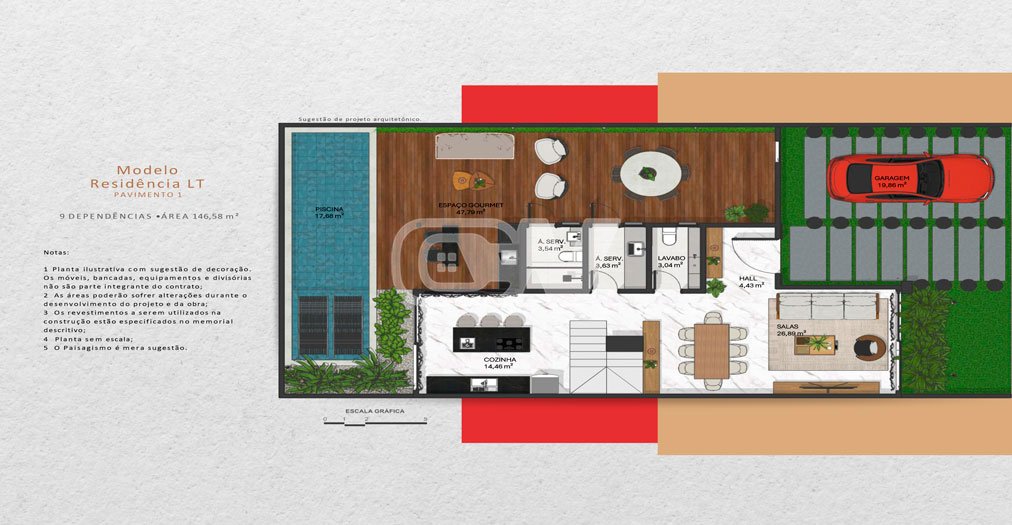 Frente: 9,50m² Fundos: 9,50m² Lateral direita: 20m² Lateral esquerda: 20m²
